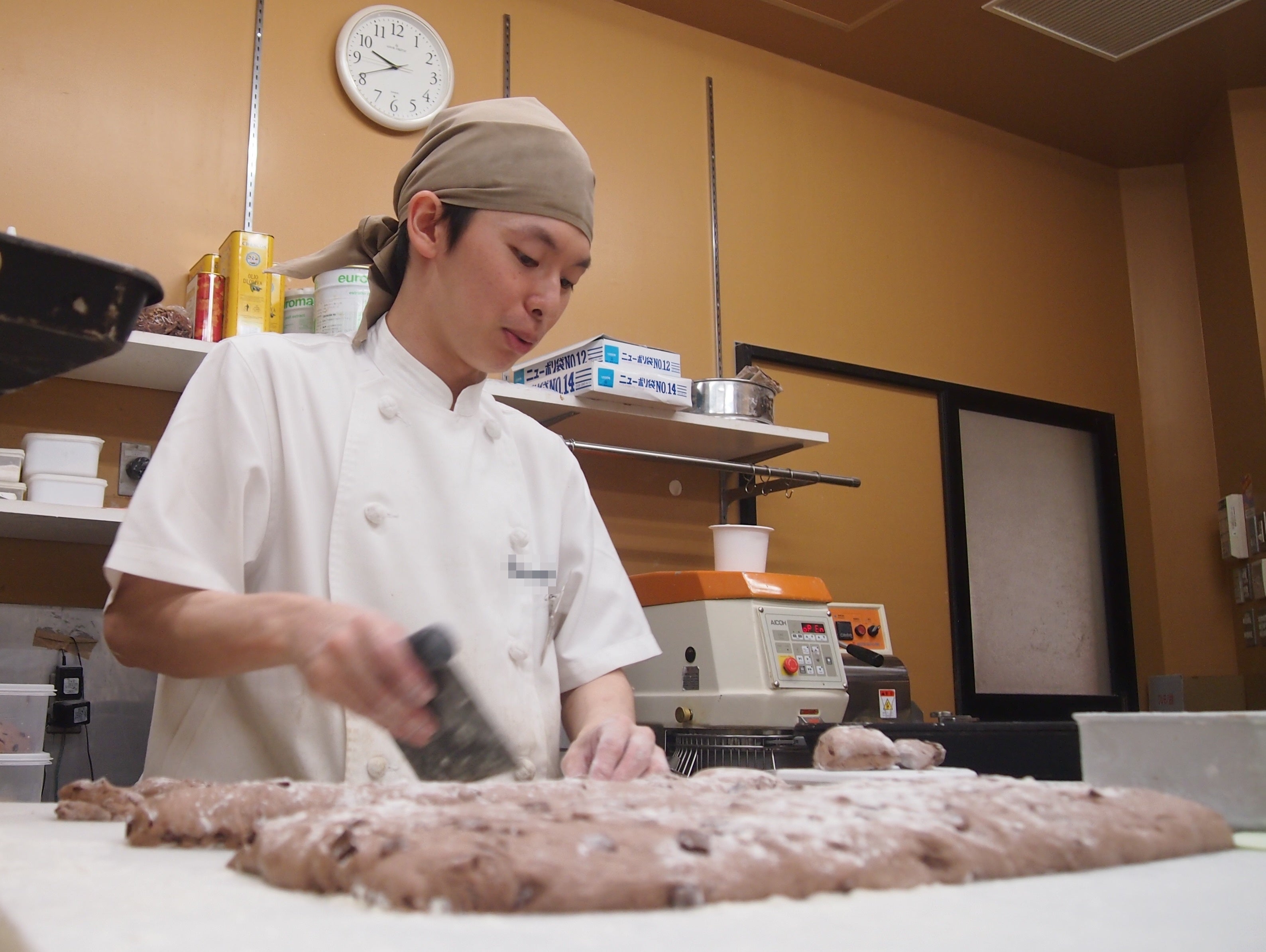 (パン屋で修行中の吉田。)