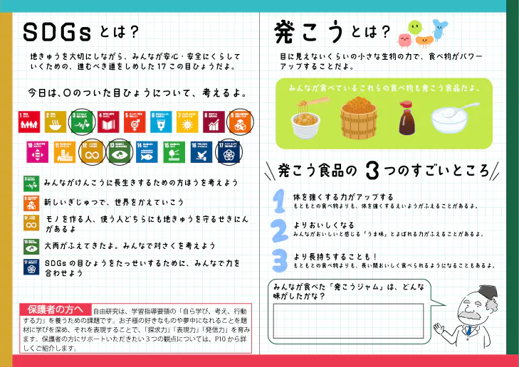 2023/07/10 15:23クラウドファンディング第1弾にご支援いただいた皆様、第2弾にご興味を持ってくださっている皆様、こんにちは。山口こうじ店です。7月に入り、いよいよ夏休みの計画もお考えの頃なのではないでしょうか?本プロジェクトの、夏の自由研究イベント「発酵シュガーサマースクール」の準備も着々と進んでいます。ついに、完全オリジナルの「自由研究ノート」が完成しました!今回リターン品としてお送りする「発酵シュガーあんこ/ジャム」を出発点に、発酵のしくみ(理科的内容)から、SDGsとの関係(社会的内容)まで幅広く学べるノートになっています。また、そのまま書き込みができる「自由研究ワークシート」のページ、親御さんに読んでいただきたい「自由研究をサポートするおうちの方へ」という解説ページも盛りこみました!冊子制作には、監修者として元小学校教諭とSDGs専門家にも参画していただき、本格的で即使える一冊に仕上がっています。「発酵シュガーサマースクール」ではこの自由研究ノートを使いながら、実際にお子さんに発酵食品作りを体験していただきます!夏の自由研究に、夏休みのおうち時間の充実に、家族との思い出作りに、ぜひご活用ください!オンラインを中心に、現地での体験枠もまだ少し余裕がありますので、ぜひご支援・ご参加をよろしくお願いいたします! もっと見る