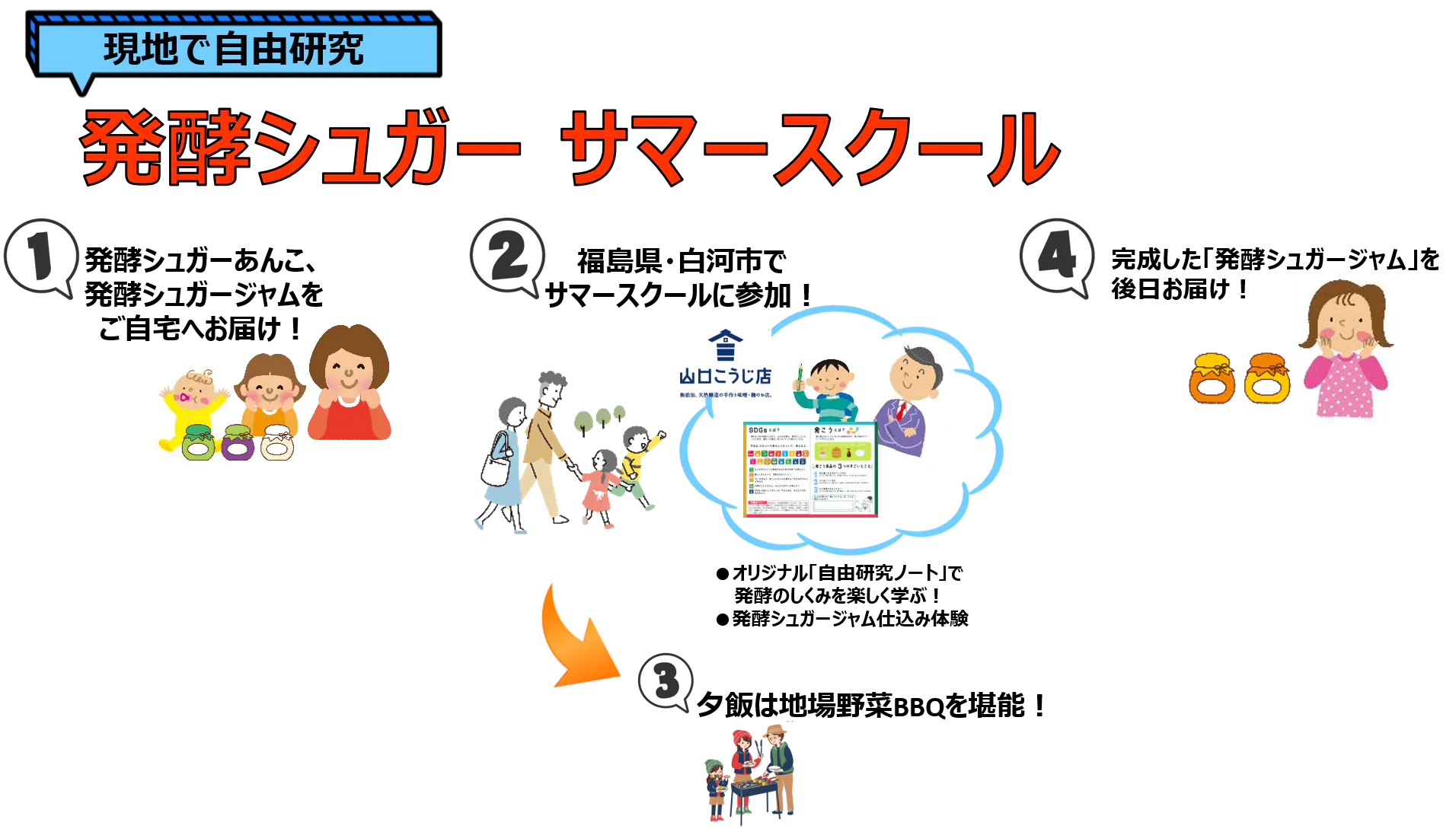 「発酵シュガーサマースクール」のプログラムを、福島県白河市の「山口こうじ店」に来て体験していただけるプランです。