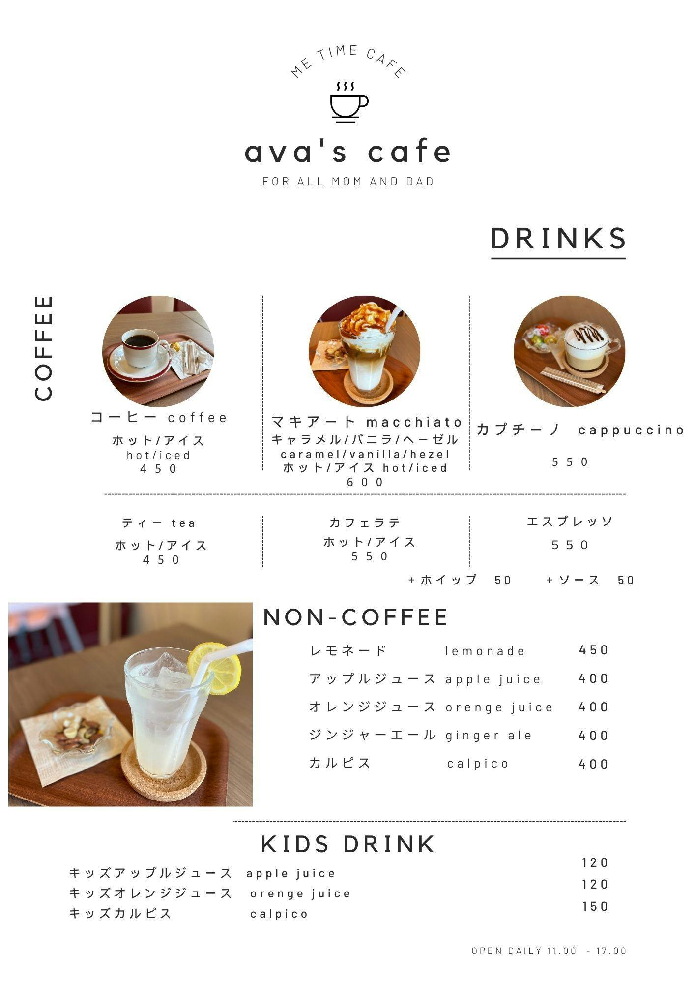 じぶんじかん ava’s café では特別なお飲み物やお食事は特にありません。