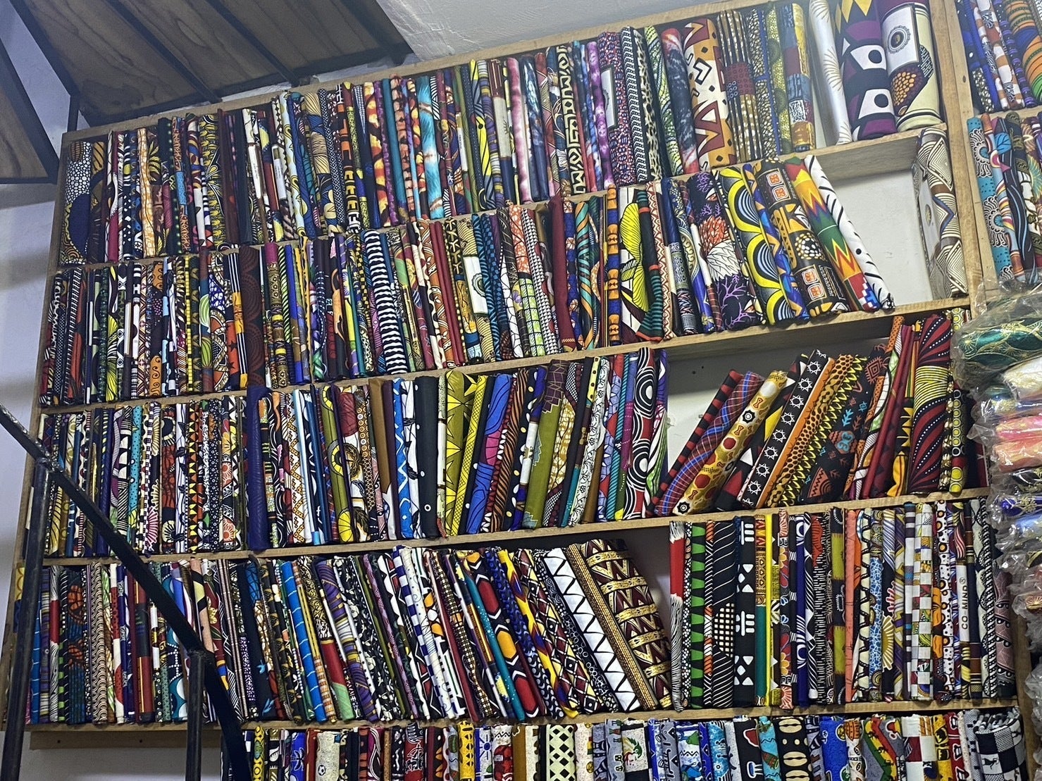 セネガルの布屋さんの写真。(一緒にアフリフォトというアフリカ布好きさんのためにイベントを企画したMais moi,の代表・高橋ミアさんから写真をいただきました!!ありがとうみあさん!)