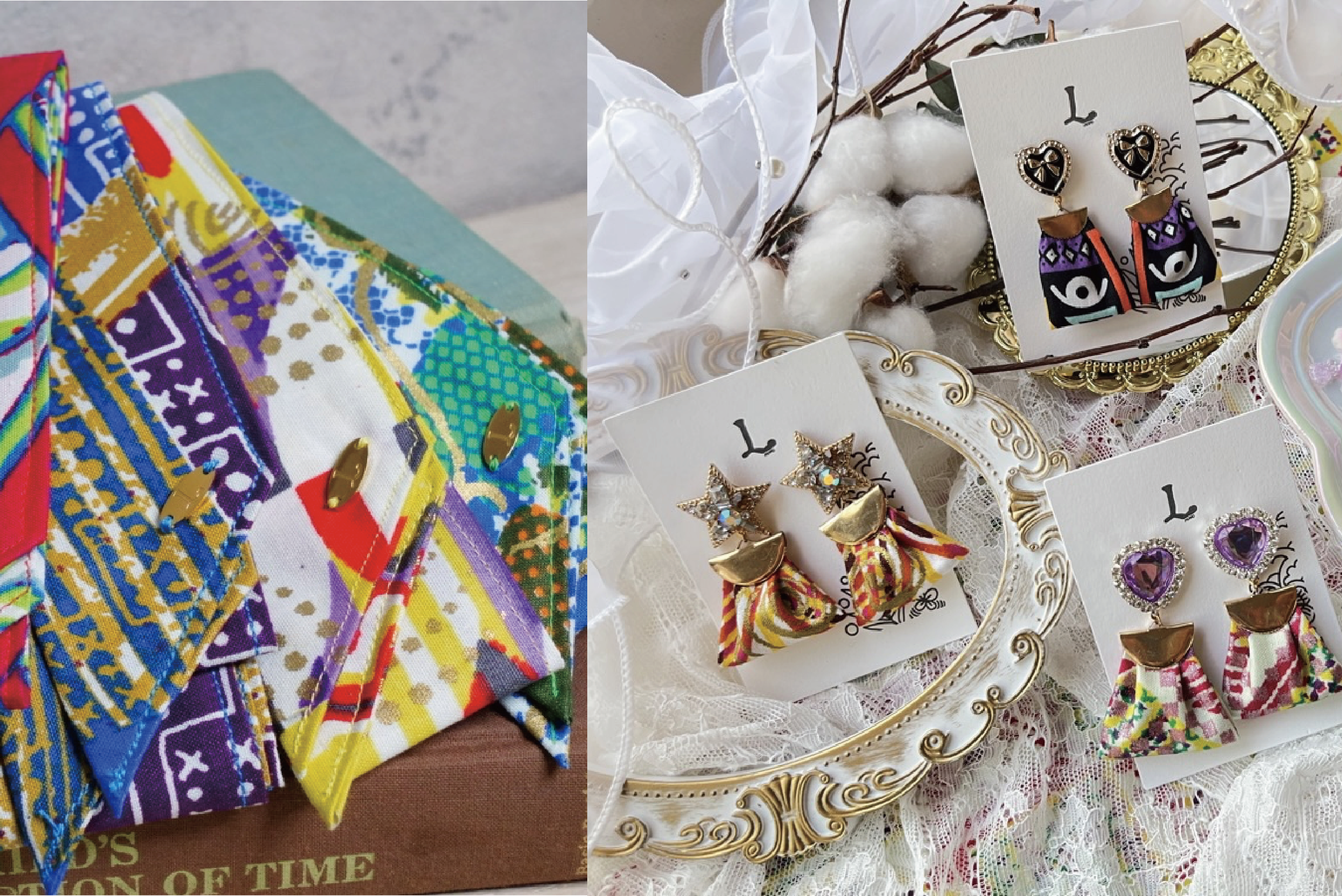 こちらのアクセサリは一例です!ご注文いただきましたお客様にはこちらから、ご購入時にご入力いただくメールアドレス宛に連絡させていただきます。発送は、プロジェクト後になりますが、オーダー内容の承りはご購入後すぐに開始いただけます。(ご注文いただくタイミングでお選びいただける布の種類が異なりますので予めご了承くださいませ☺︎)