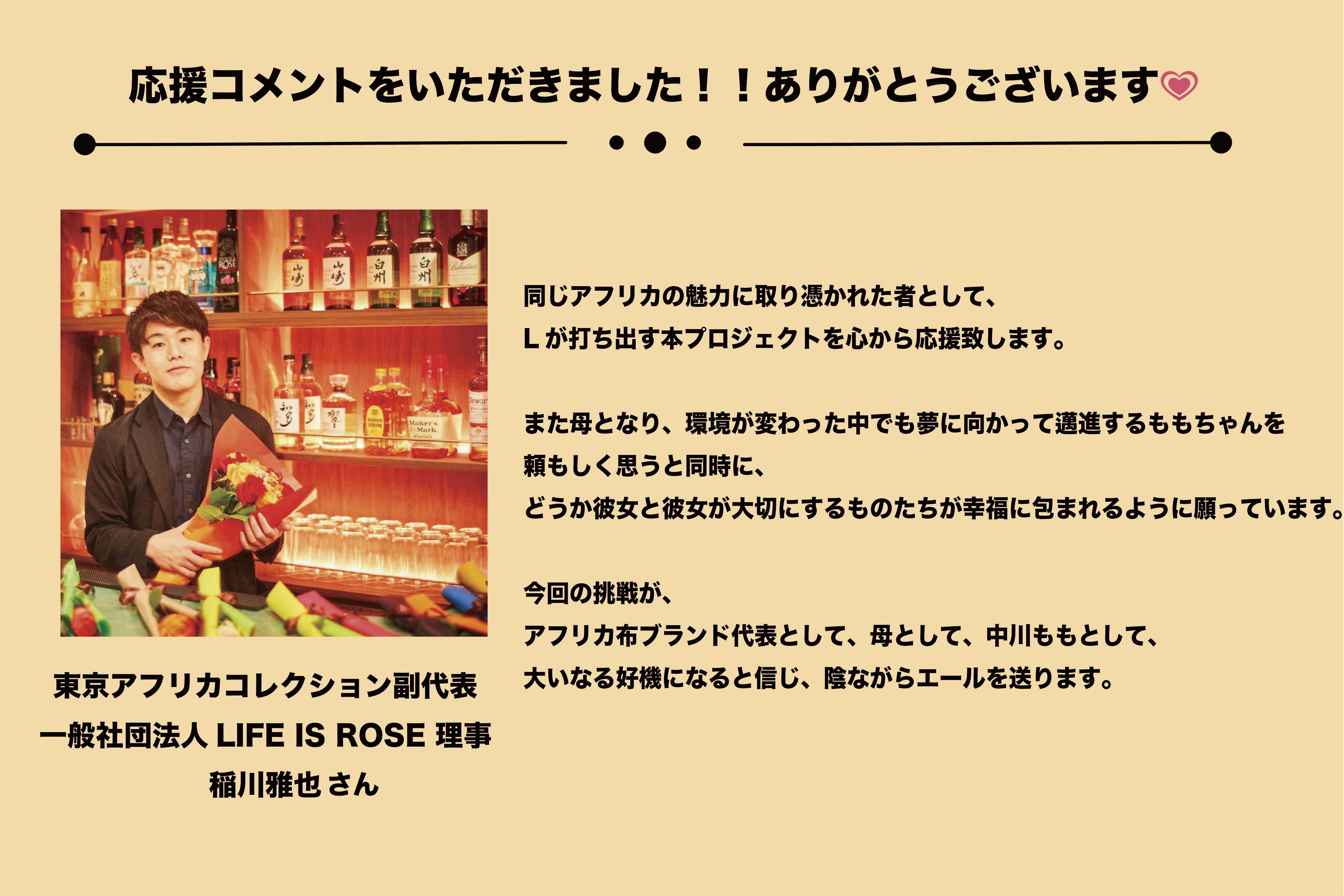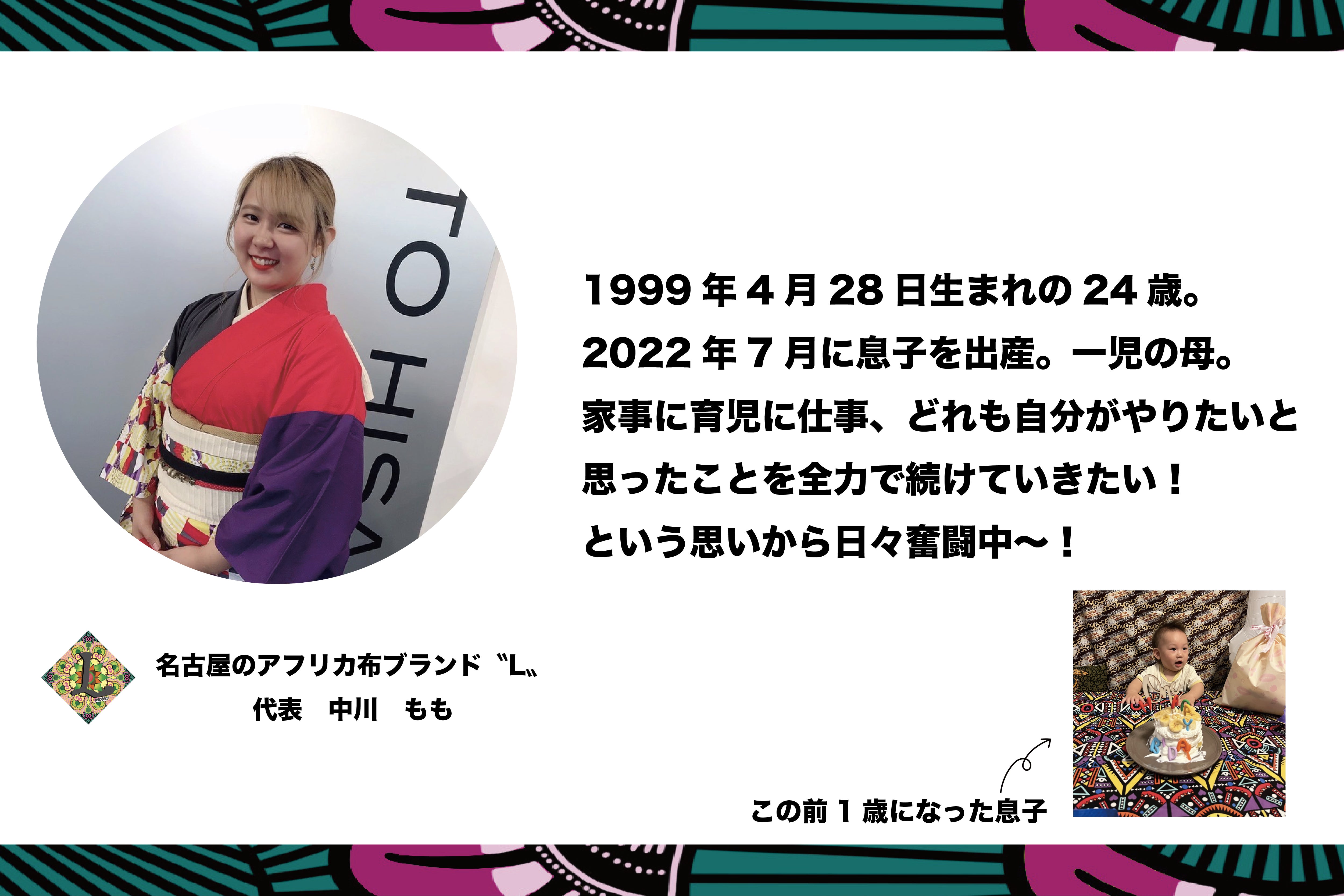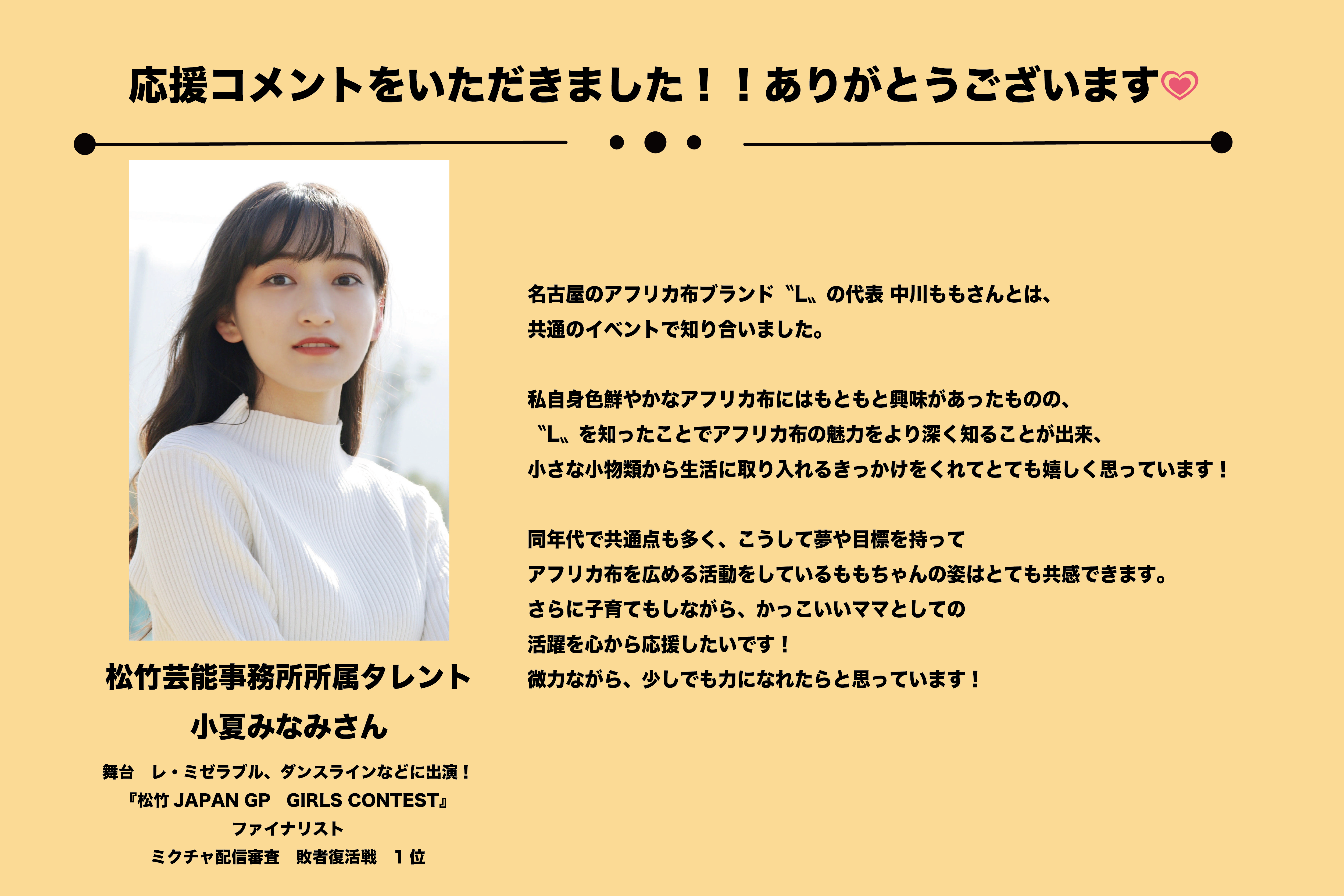 これからも、名古屋のアフリカ布ブランド〝L〟と中川ももをよろしくお願い致します。