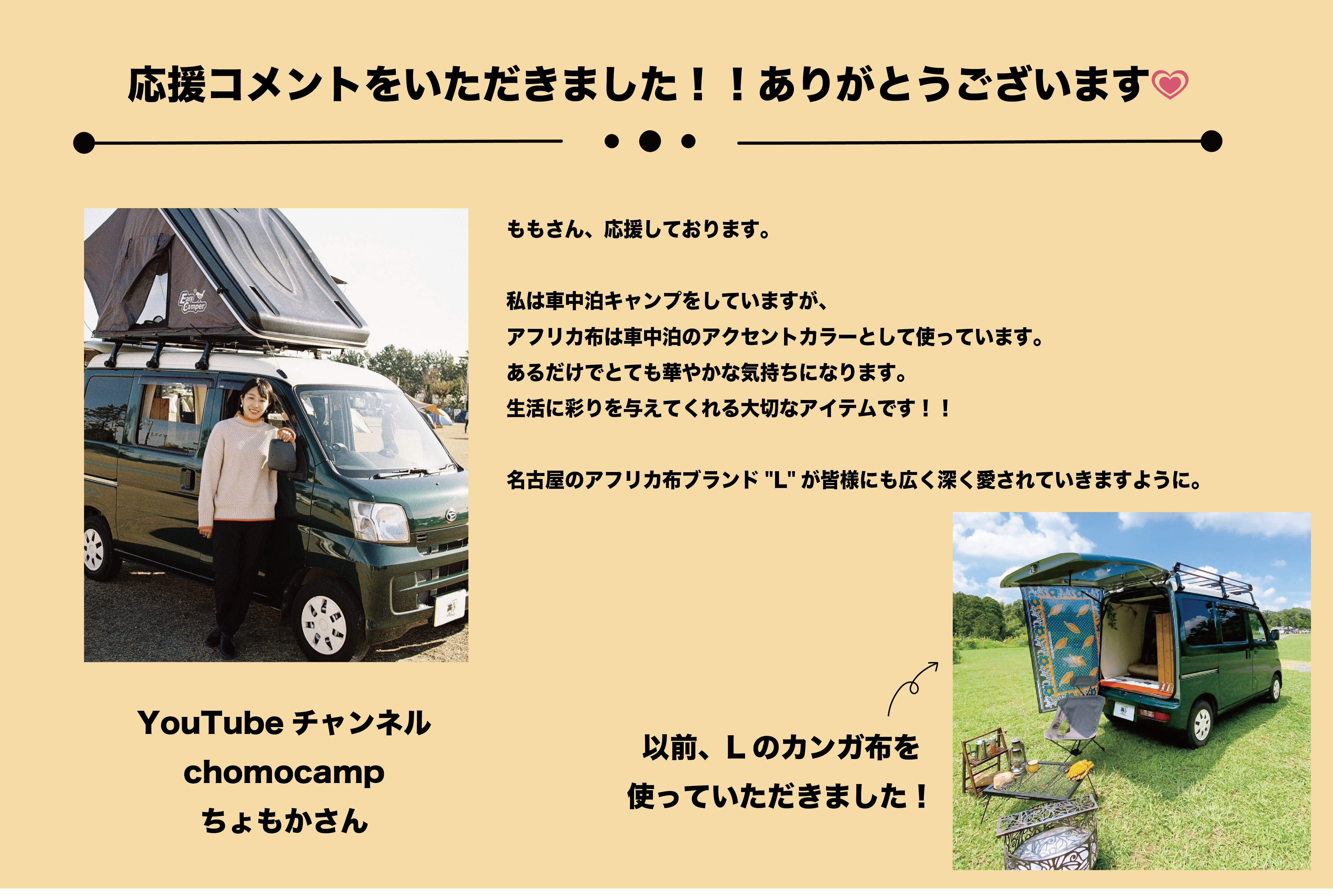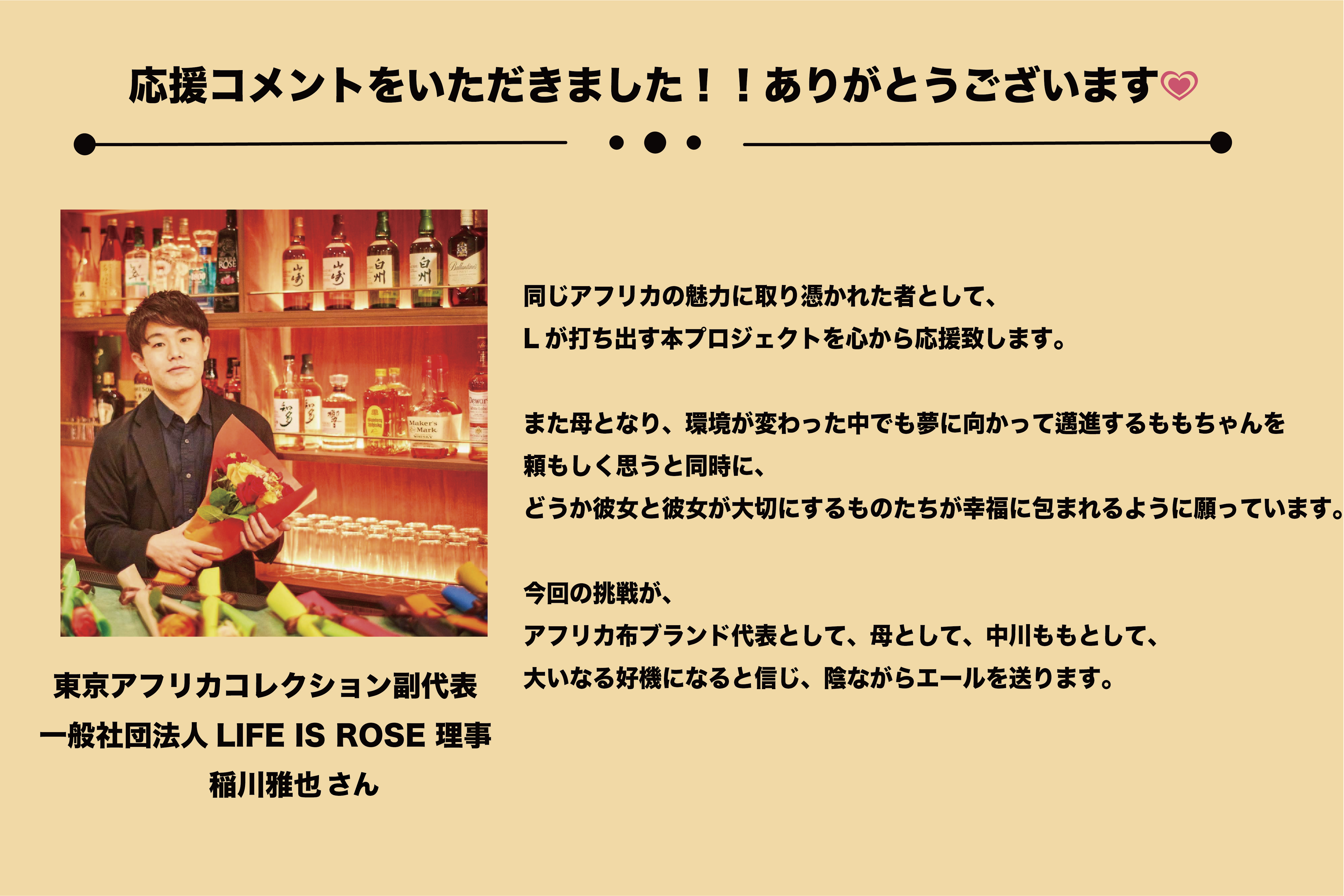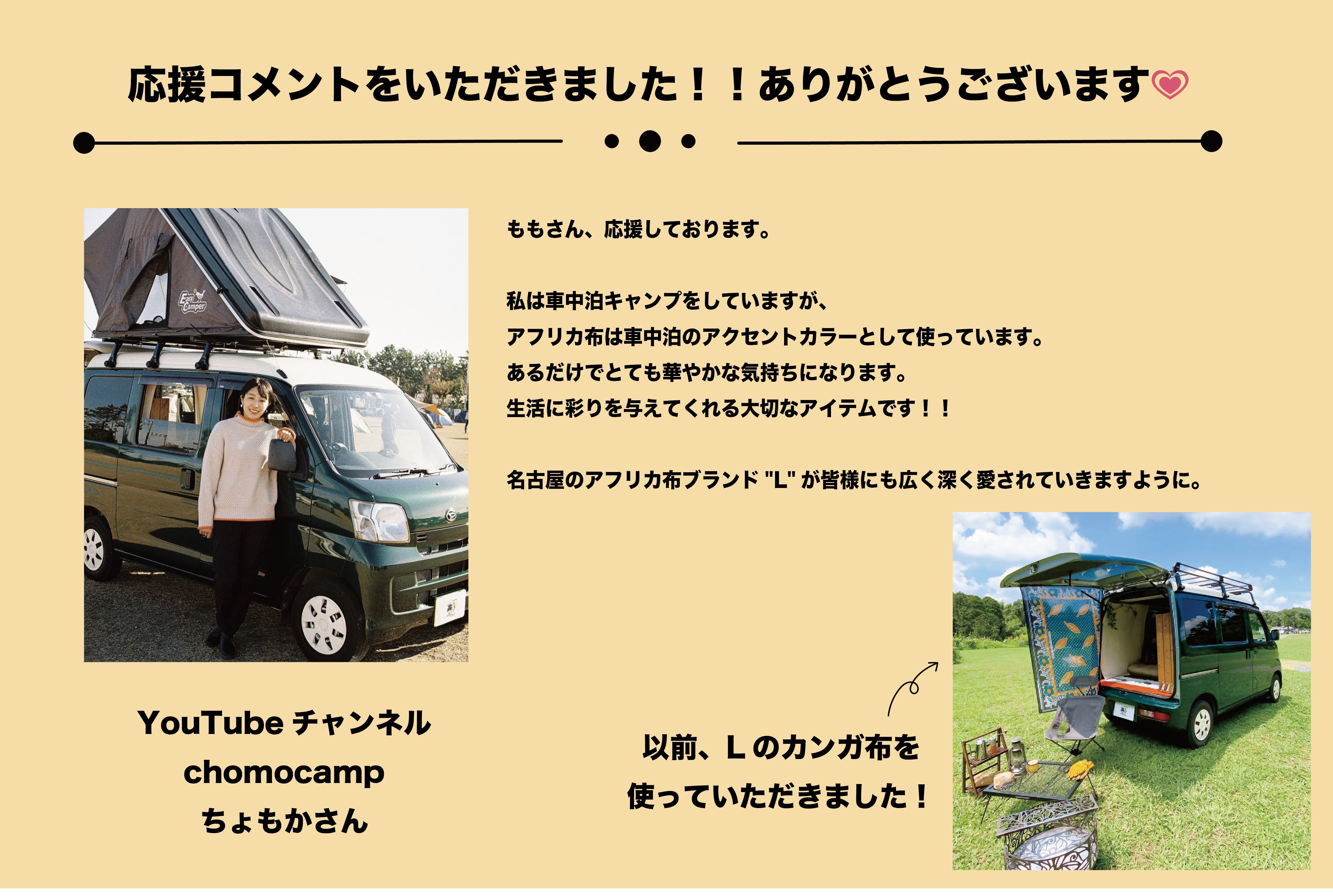 これからも、名古屋のアフリカ布ブランド〝L〟と中川ももをよろしくお願い致します。