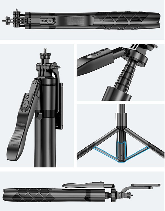 ・レバーを最大153cmまで伸縮可能。コンパクトサイズながら様々な撮影に対応。