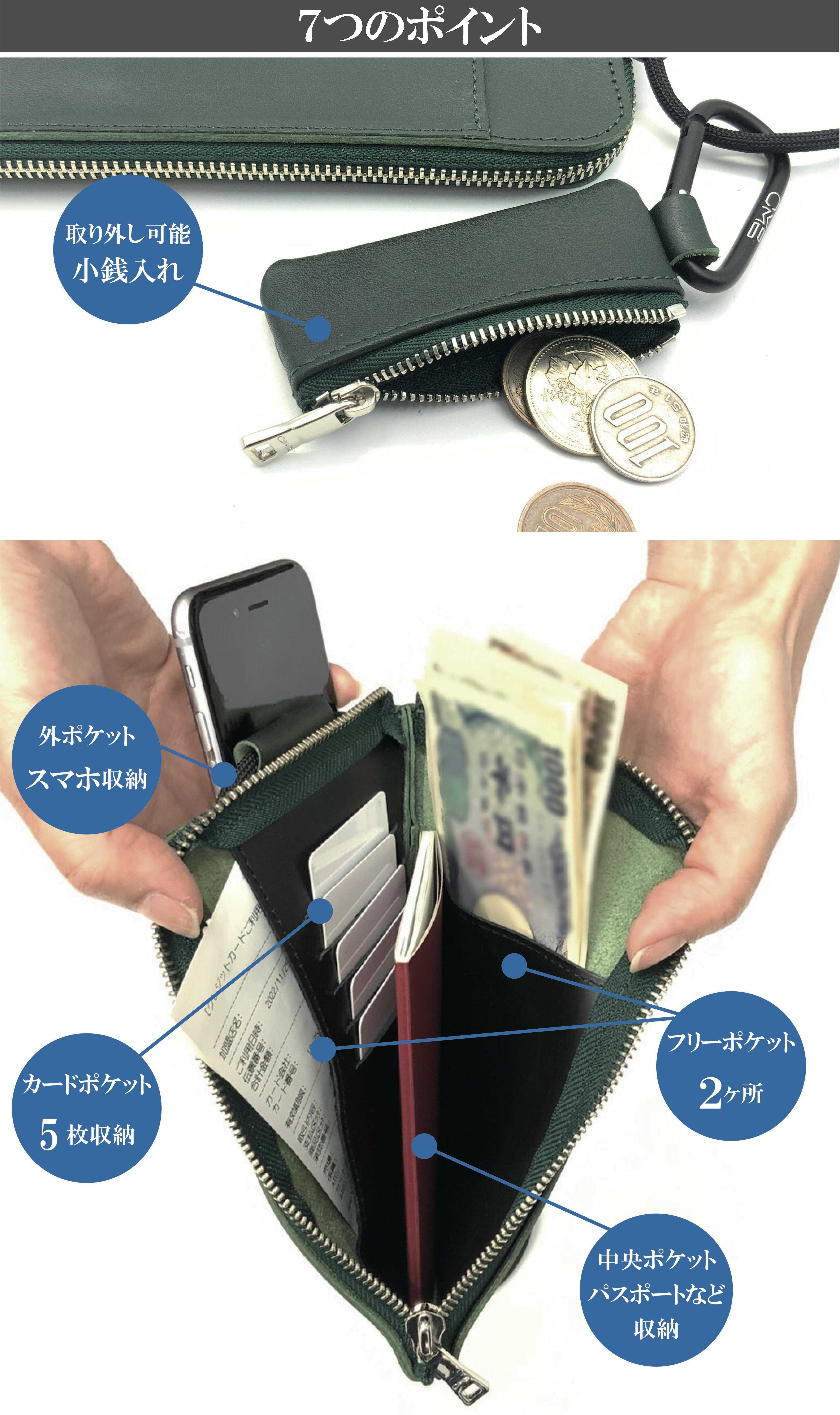 シンプルなルックスですが、お金やスマホだけでなく、柔軟な収納力を発揮します。