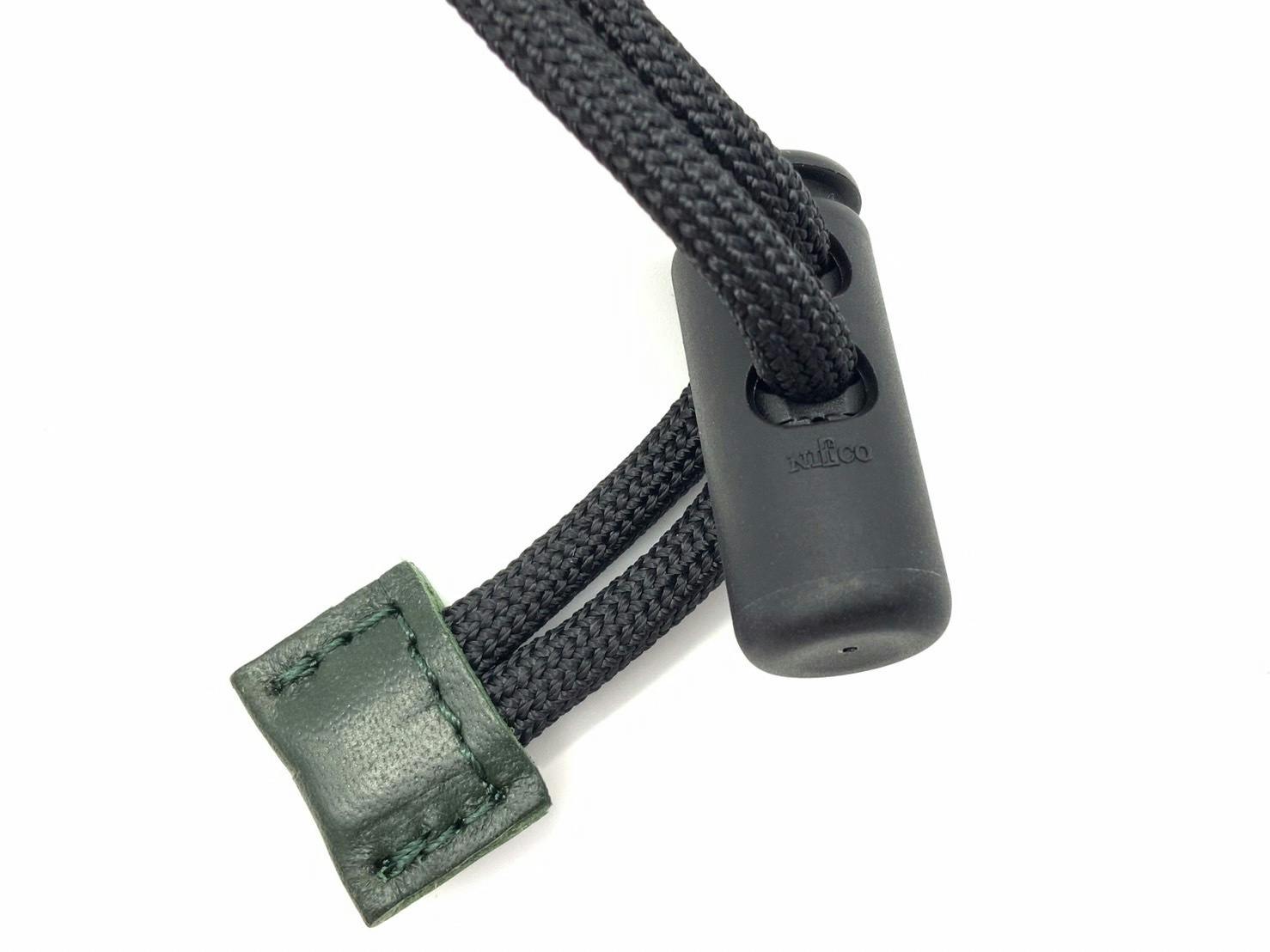 年齢問わず、ジェンダーレスに使用して頂けるよう、ワンタッチで紐の長さが調整できるコードロック付き。夏の薄着や冬の厚着にも対応可能。コードロックは日本の老舗プラスチックパーツメーカー「NIFCO ニフコ」を使用。