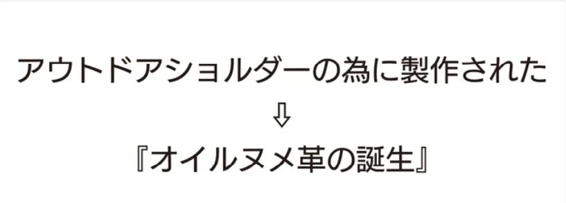 大きく分けると4つの意見が多かったので,その4つの特徴をすべて兼ね備えたアウトドアショルダー専用の革『オイルヌメ革』を完成させました。