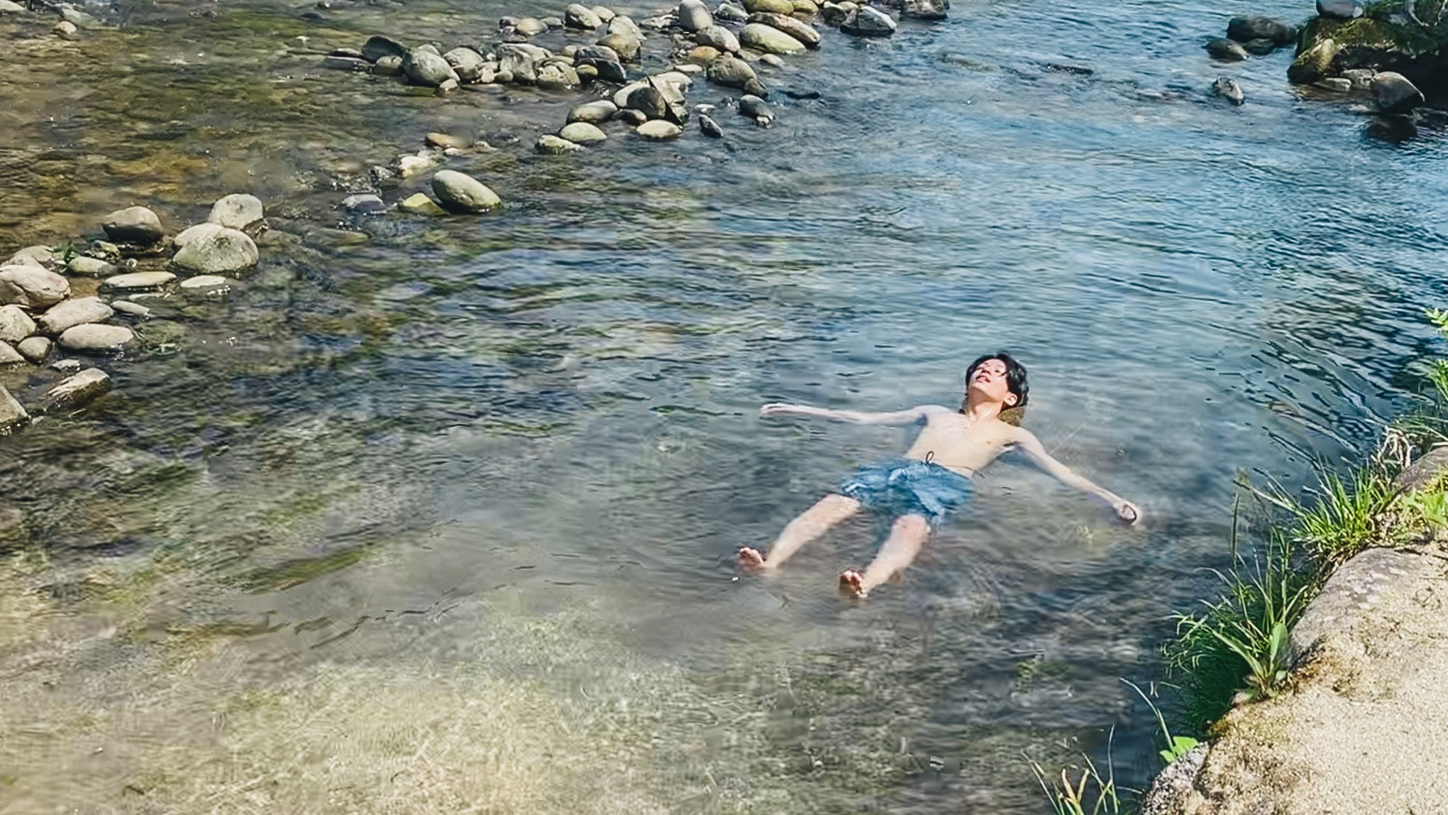 ■水風呂についてサウナ後には、透き通った綺麗な川に飛び込み、火照った体を冷やします。