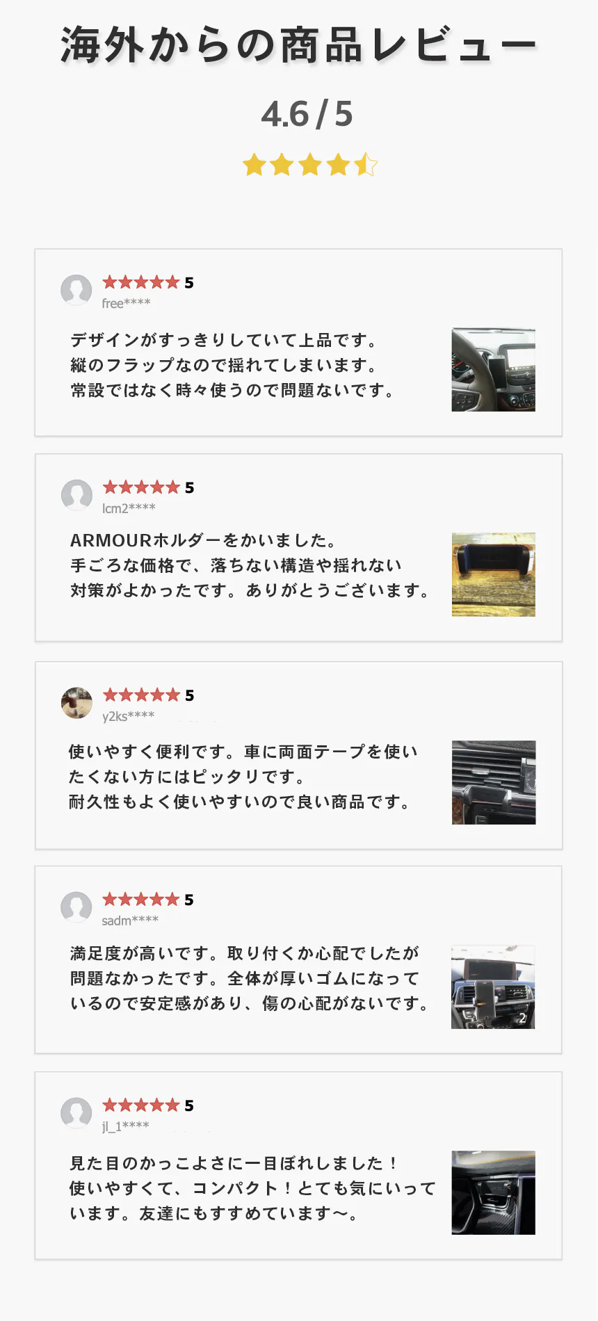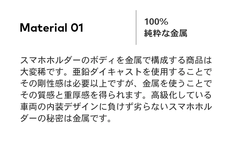 既に車載ホルダー関連では300万台を突破している出荷数をほこり、その製品作りはとにかく質感。