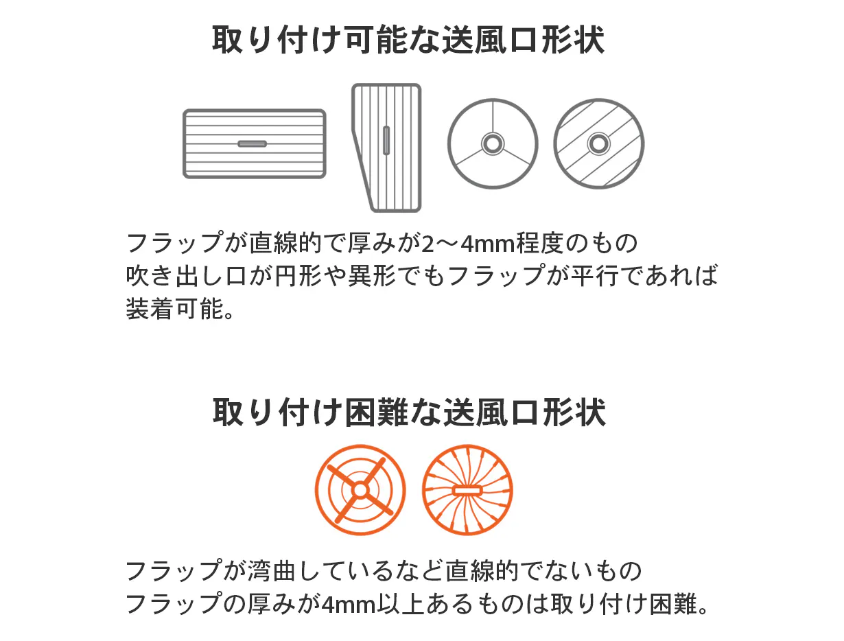 ご利用の車の吹き出し口形状によっては取り付けできない場合があります。