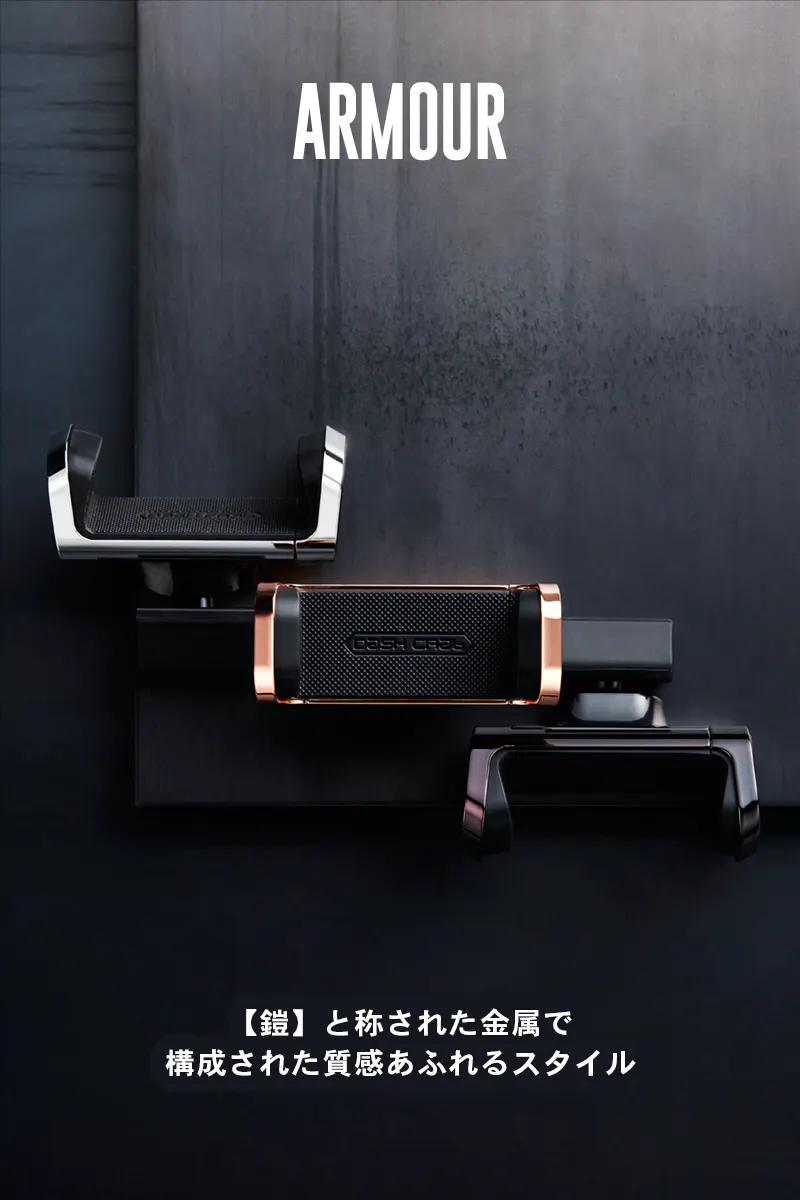 取り付けシンプル。角度調整シンプル。硬くて重厚のARMOUR【鎧】スマホホルダー