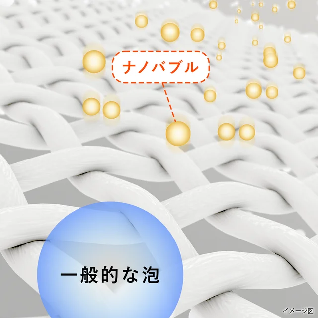 ナノバブルは一般的な泡と大きさが違い、極小の泡が繊維の奥まで入って汚れを落とす事ができます。