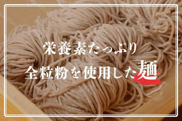 当店では、全粒粉を使用した自慢の麺をご提供しています。全粒粉は健康に良い栄養素が豊富に含まれており、食物繊維やビタミン・ミネラルなどが豊富に含まれています。また、1食あたりの麺の量もなんと280g!満足感満点の大ボリュームで、お腹いっぱいになること間違いありません。健康と満足を兼ね備えた一杯を!