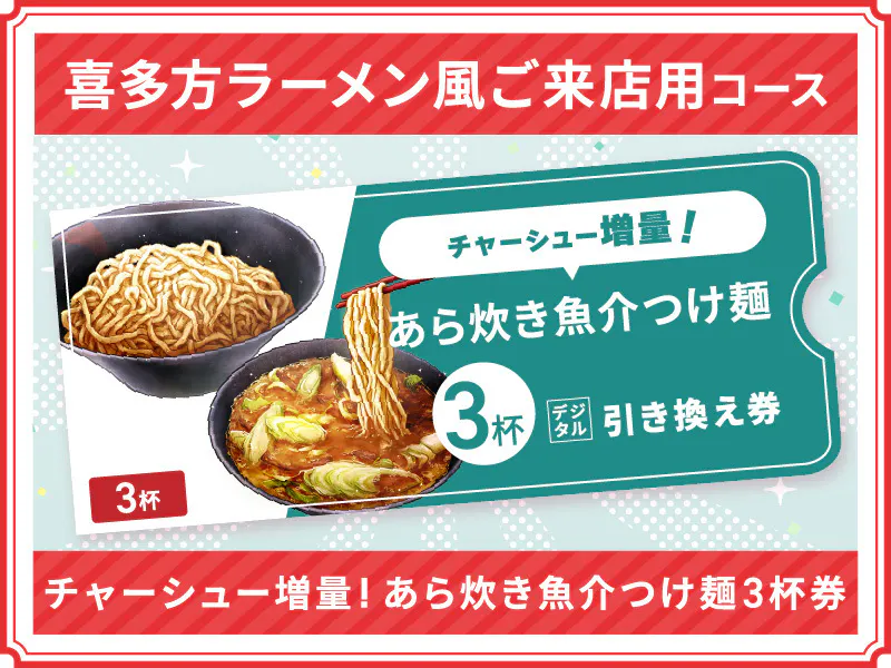 ③【ご来店用】チャーシュー増量!あら炊き魚介つけ麺3杯券