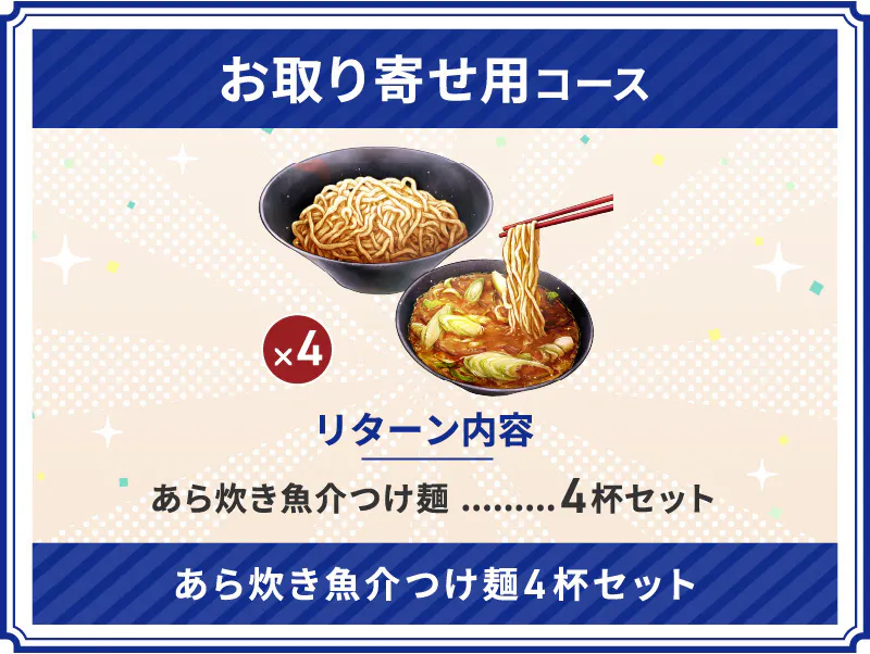 あら炊き魚介つけ麺のスープと麺を4人前セットでお届けします。