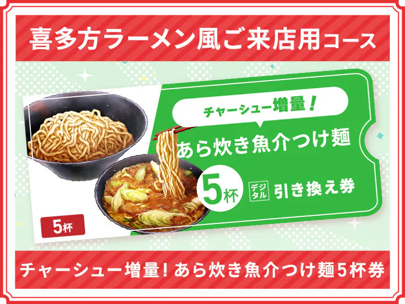 ⑥【ご来店用】チャーシュー増量!あら炊き魚介つけ麺5杯券