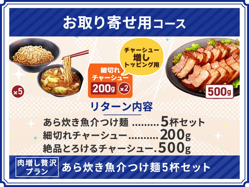 ⑧【お取り寄せ用】あら炊き魚介つけ麺5杯セット【肉増し贅沢プラン】