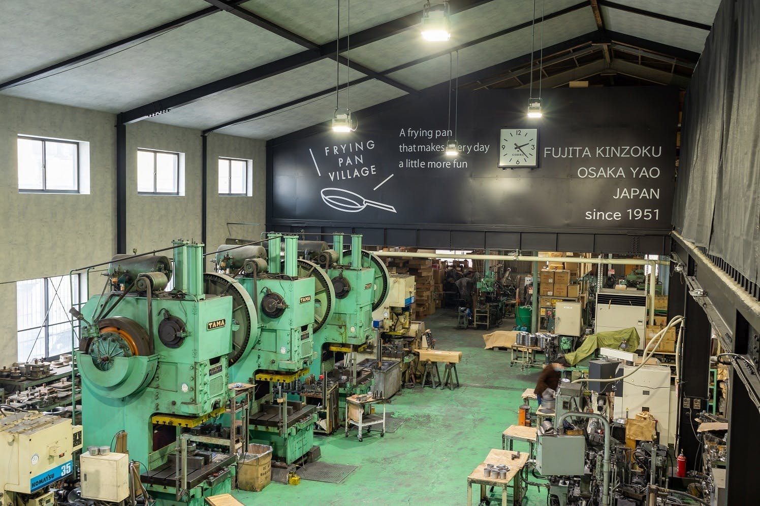 大阪府八尾市で1951年に開業した藤田金属株式会社は、フライパンをはじめ、鍋やヤカン、コップなどの金属製品を数多く作り続けています。毎日使う身近な道具だからこそ、職人の技術と創意工夫を最大限に盛り込み、便利さだけでなく日常を楽しくするような道具づくりを目指しています。