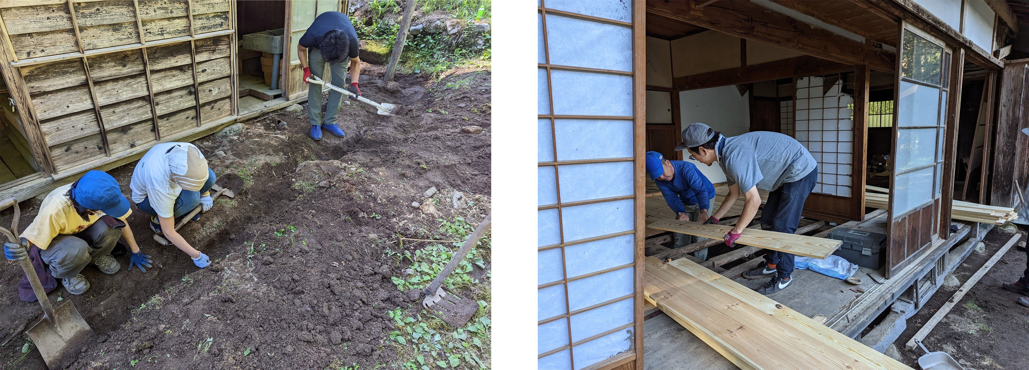 去年(2022年)には、床下に堆積した土砂の鋤取りと建物周辺の整備を行いました。