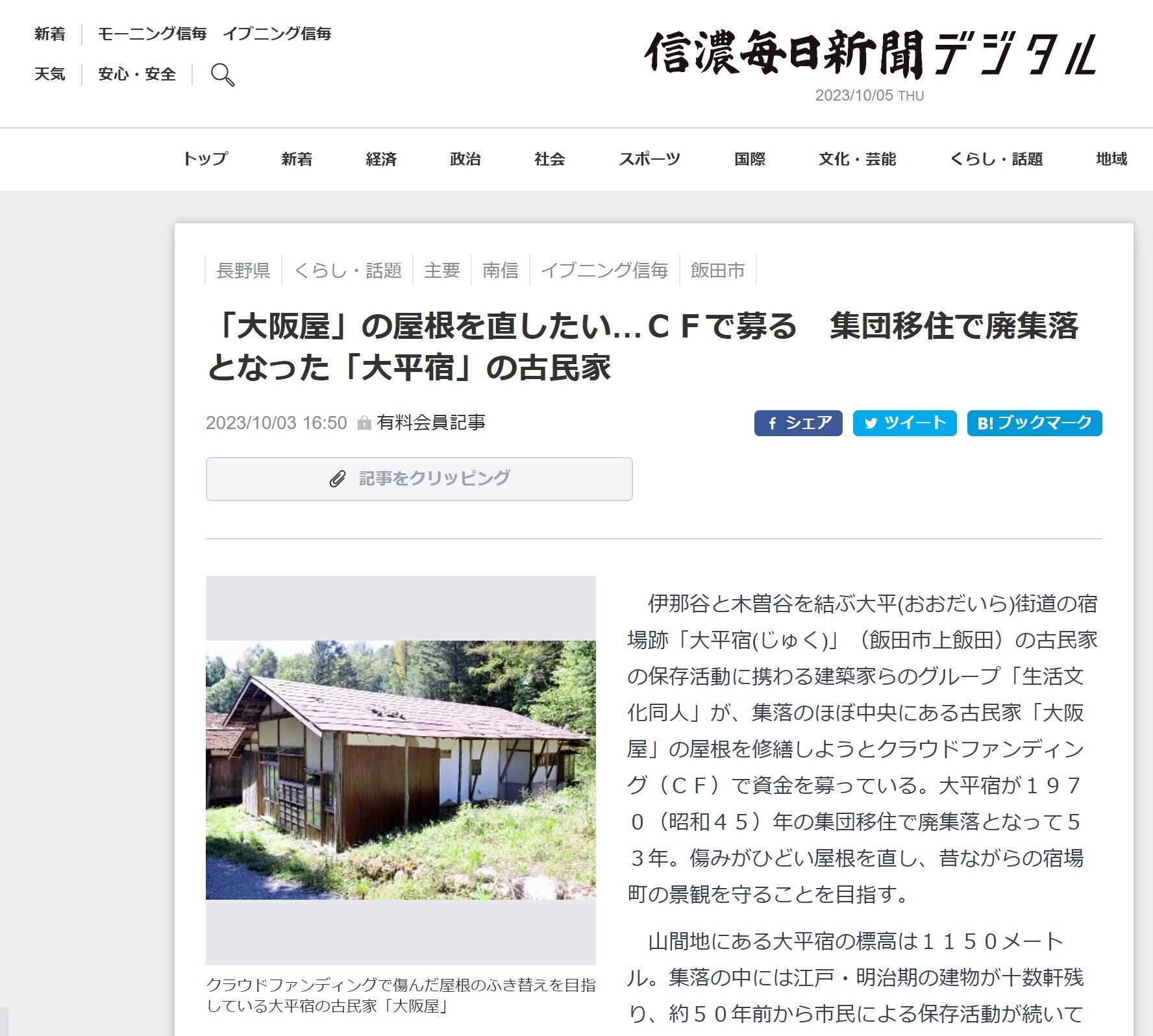 2023/10/05 18:56ラスト2日!!少しでも充実した改修計画とするために!next ゴール!ガンバリマス!!有難いことに、今回の挑戦!を通して県内外、あらゆるとことから注目して頂いております!昨日、長野県の新聞社信州毎日新聞で記事に取り上げて頂きました!!皆さん、良かったら読んでみてください!!あと少しですが!皆様の変わらないご支援、ご発信をよろしくお願いします! もっと見る