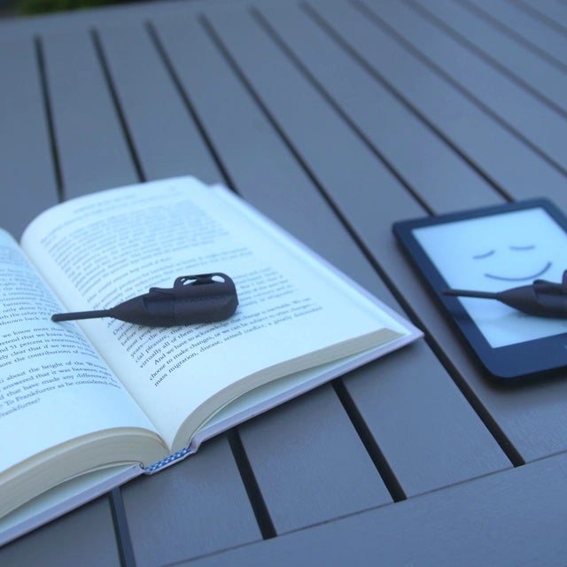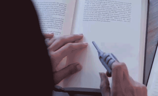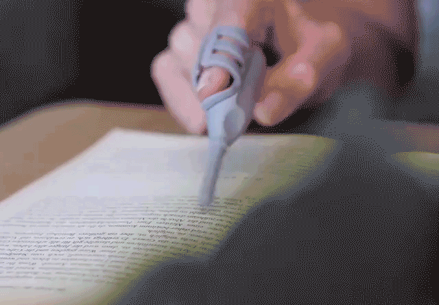 『Bookhoover』は、人差し指に差し込んで文章をなぞるだけ。