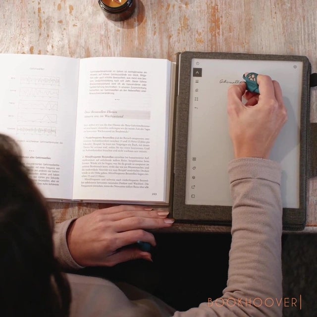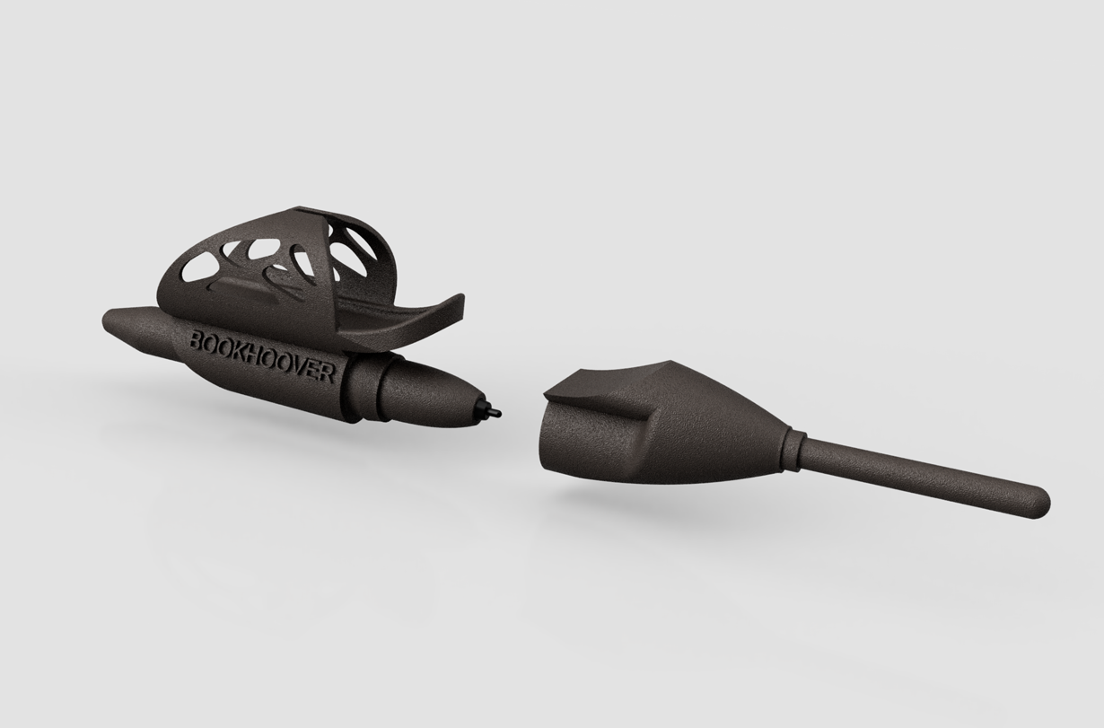 『Bookhoover』 は人間工学に基づいた簡単な書き心地を実現し、鉛筆、ボールペン、または EMR タッチペンを内蔵。
