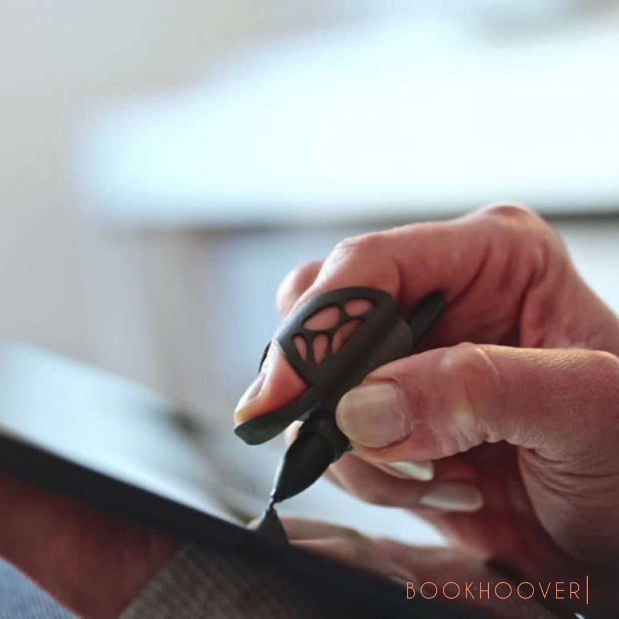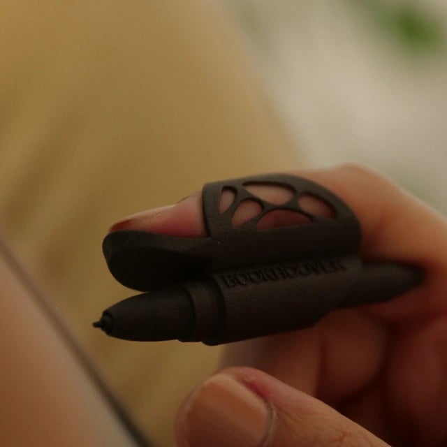指にとてもよくなじみ、ポインターもついていて読書時に使用できます。指に自然にフィットして、文章を何度も読み返すことなく本を読むことができます。指そのものを使うこともできますが好きではありません、それは、指が太く文字を隠してしまうことがあるからです。先端が細長いポインターになっているので『Bookhoover』はこの問題を軽減してくれます。