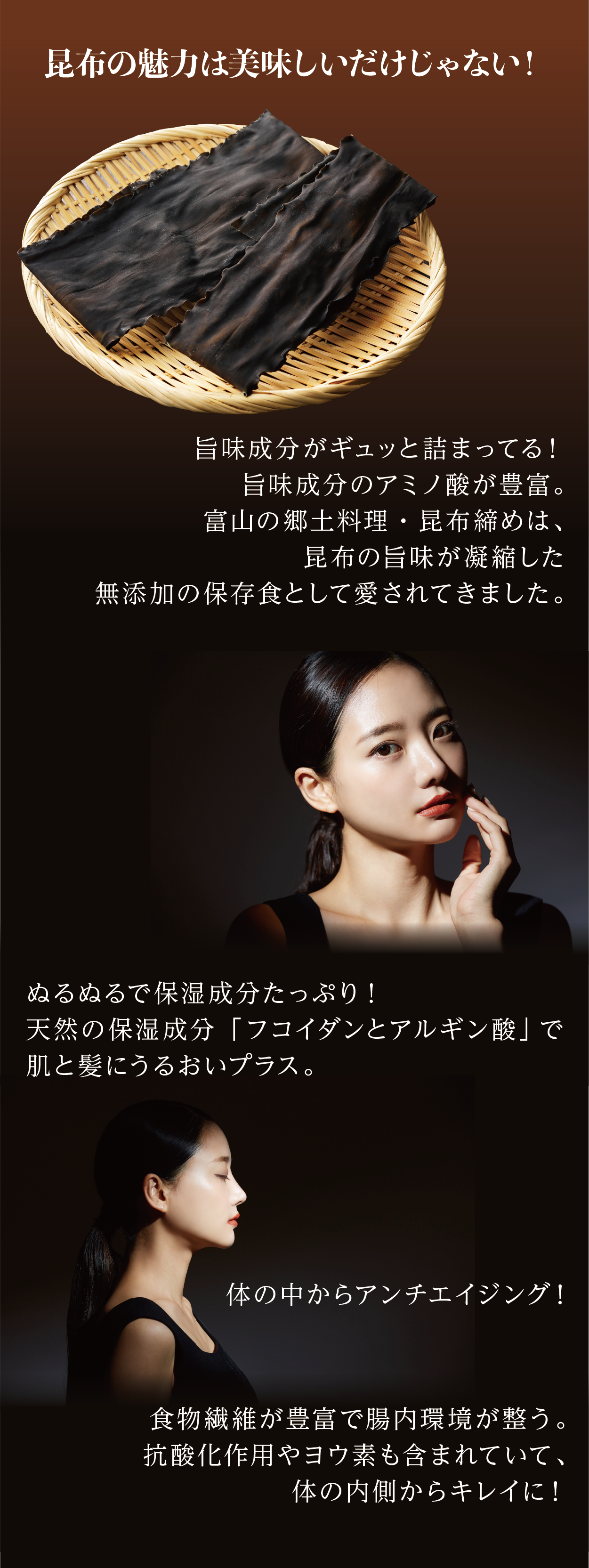 昆布養生。昆布の恵みで、健康で若々しく、美しくいていただきたい。何度でも高岡の地へ足を運べる方が増えていただけたら嬉しいと思っています。
