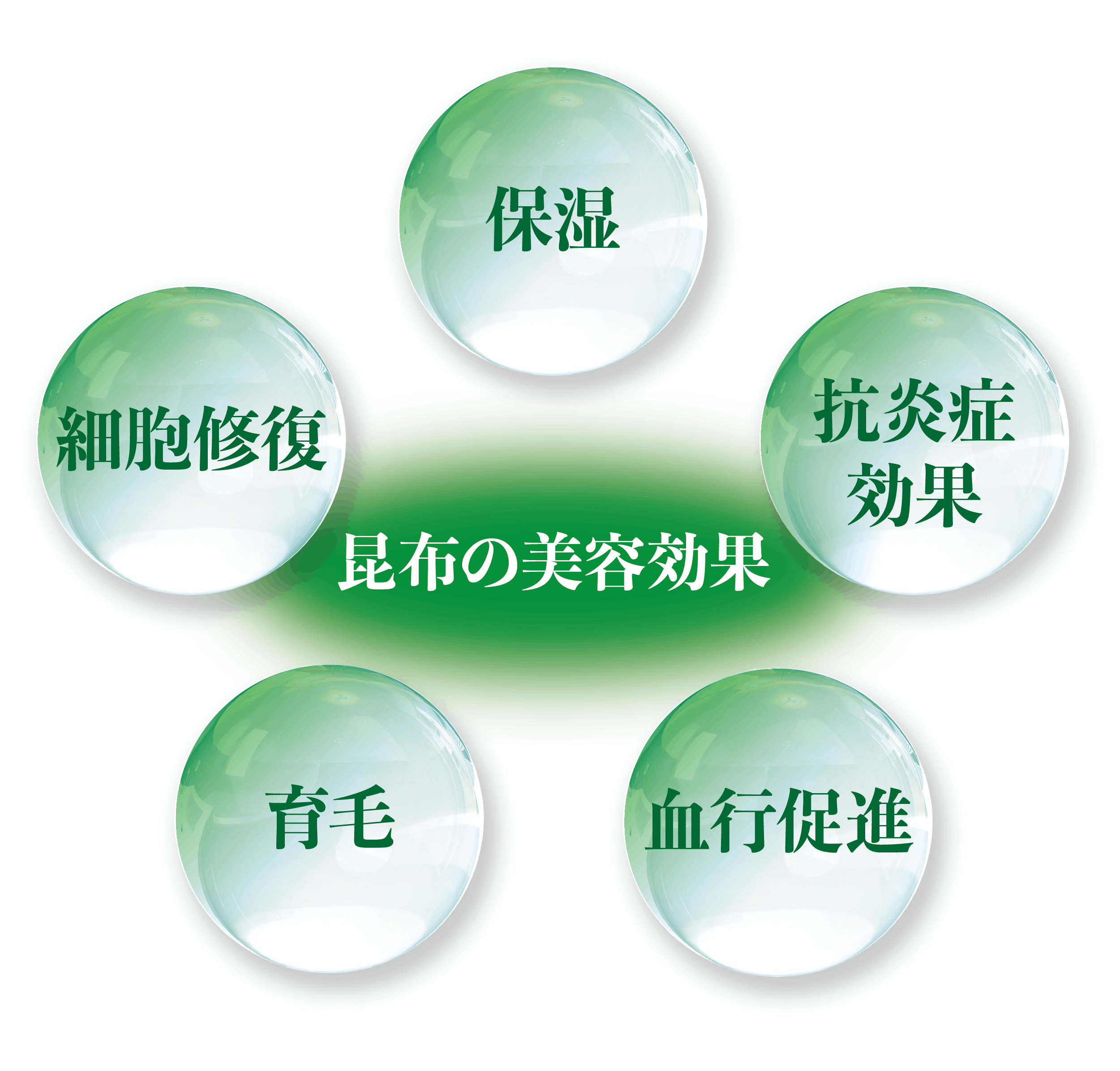 昆布は「フコイダン」や「アルギン酸」といった美容に良い成分がたっぷりと含まれており、化粧品にも使われています。