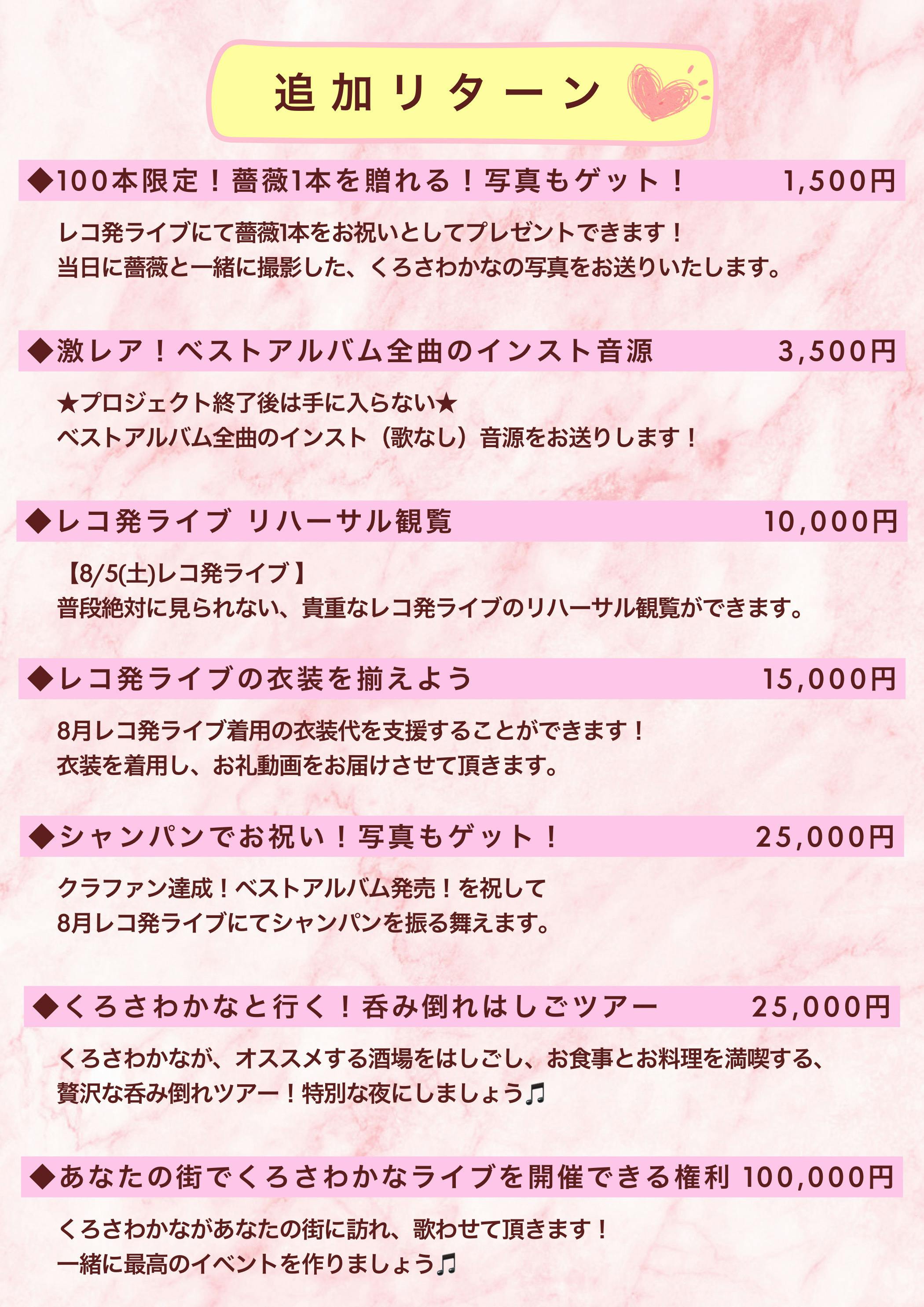 今回のリターンに関しても、皆さまに楽しんで頂けるよう精一杯考えましたので、少しでもご参加頂けると、とても嬉しいです♡