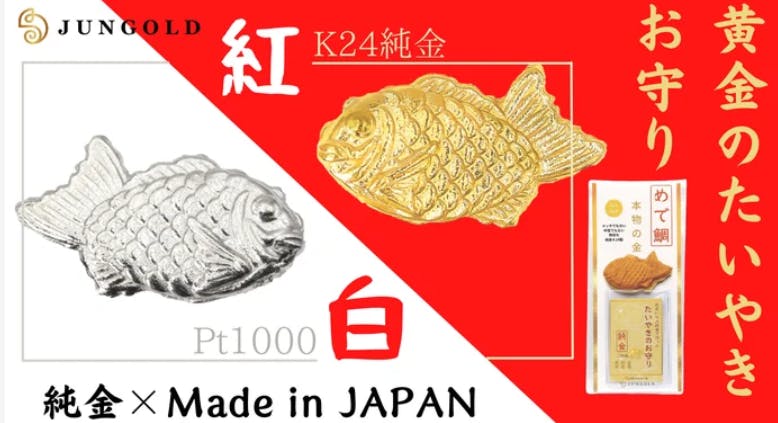 純金のJUNGOLDが贈る黄金のたい焼き!プラチナもあります.