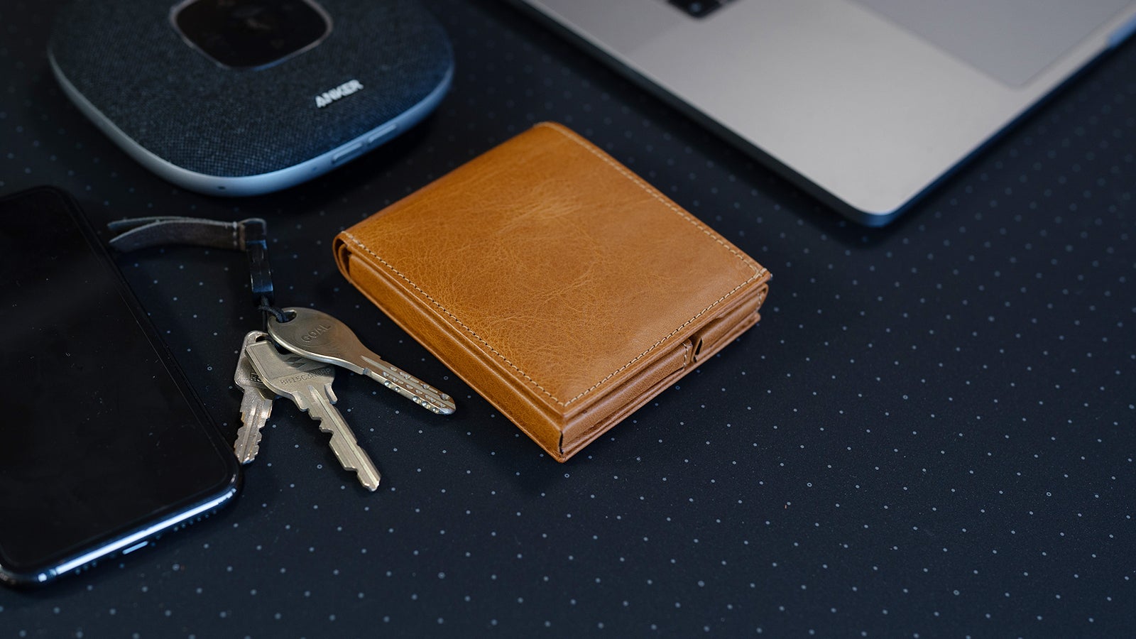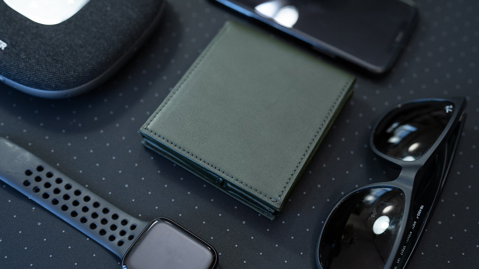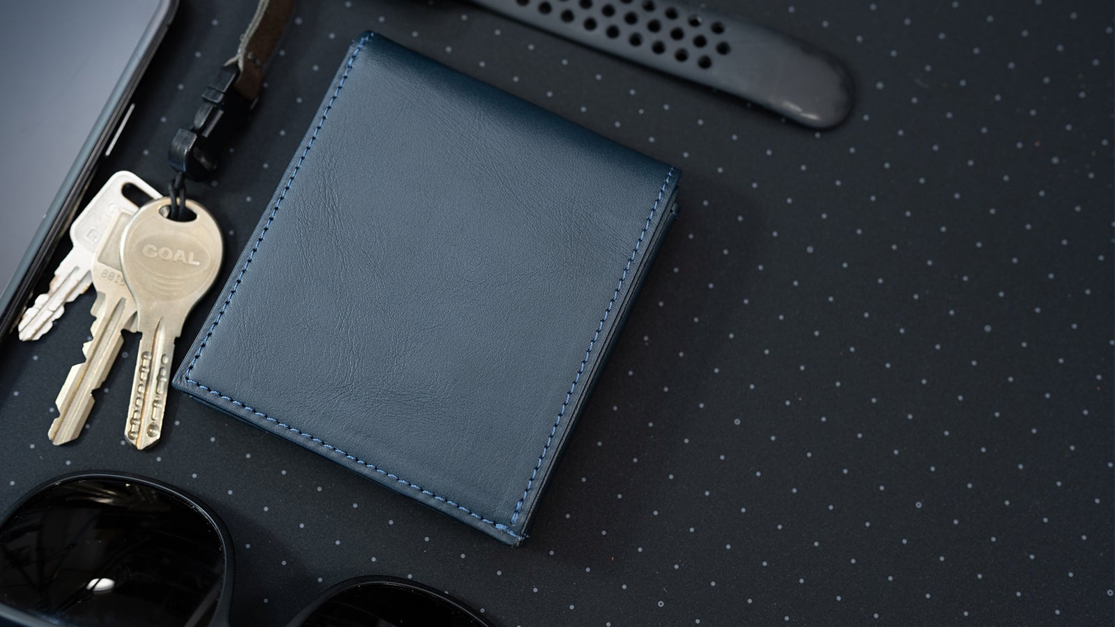 ポケットに入れてもテーブルに置いた時にも財布から悪い印象を与えない、むしろ好印象になるようなシルエットの財布。