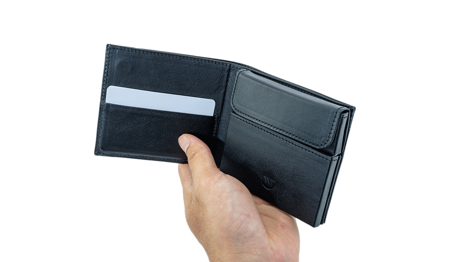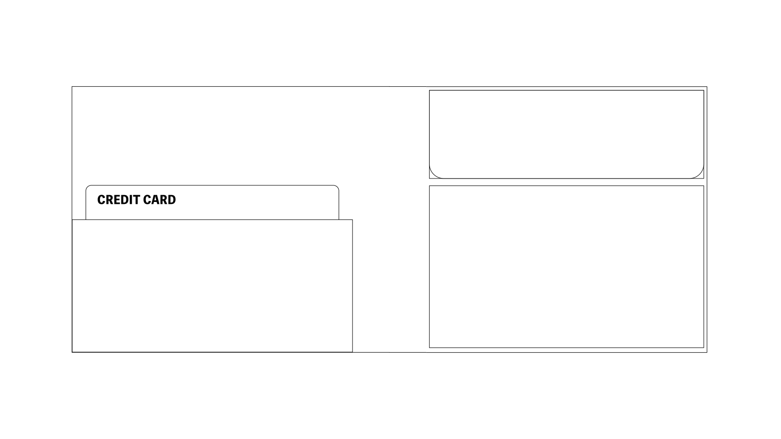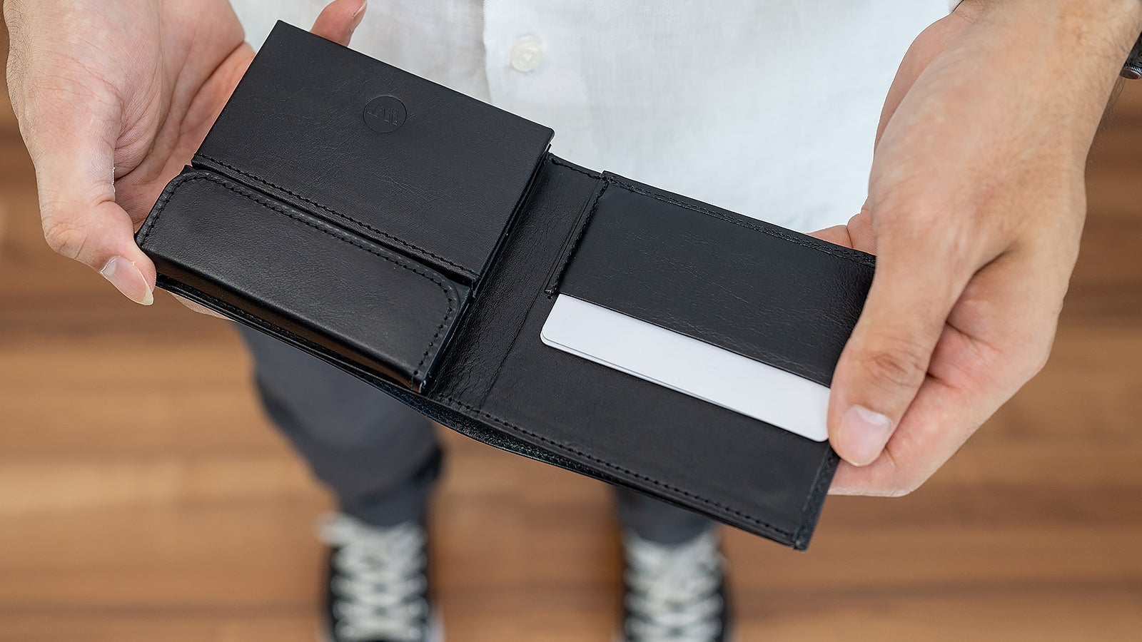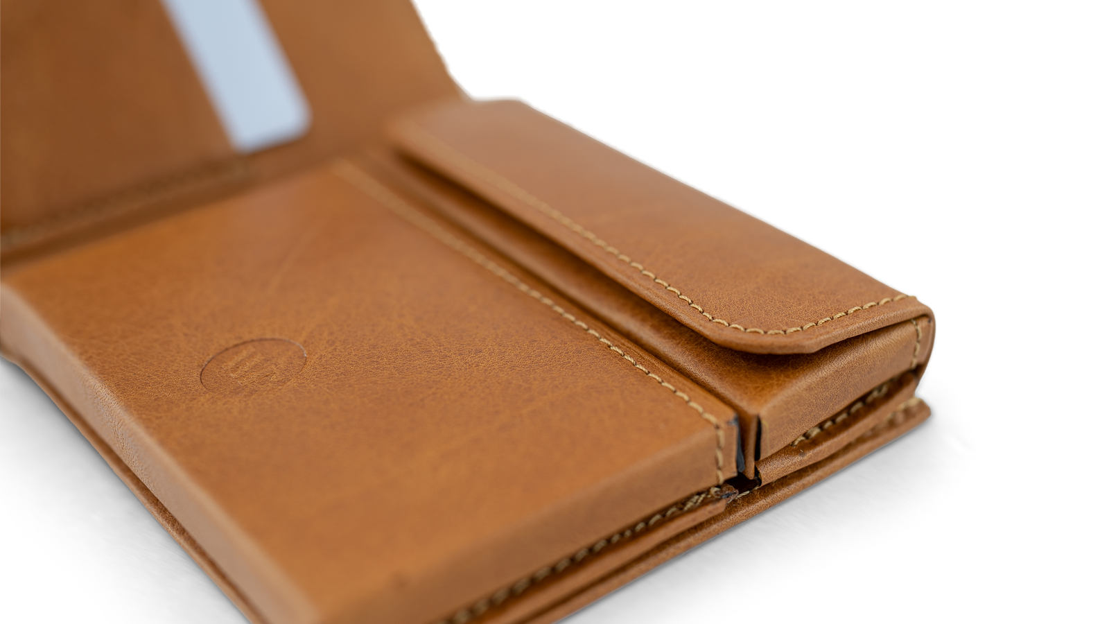 各配置を考慮して、財布を畳んだ後にポケット側のカードと硬貨ボックスが重ならない設計となっています。