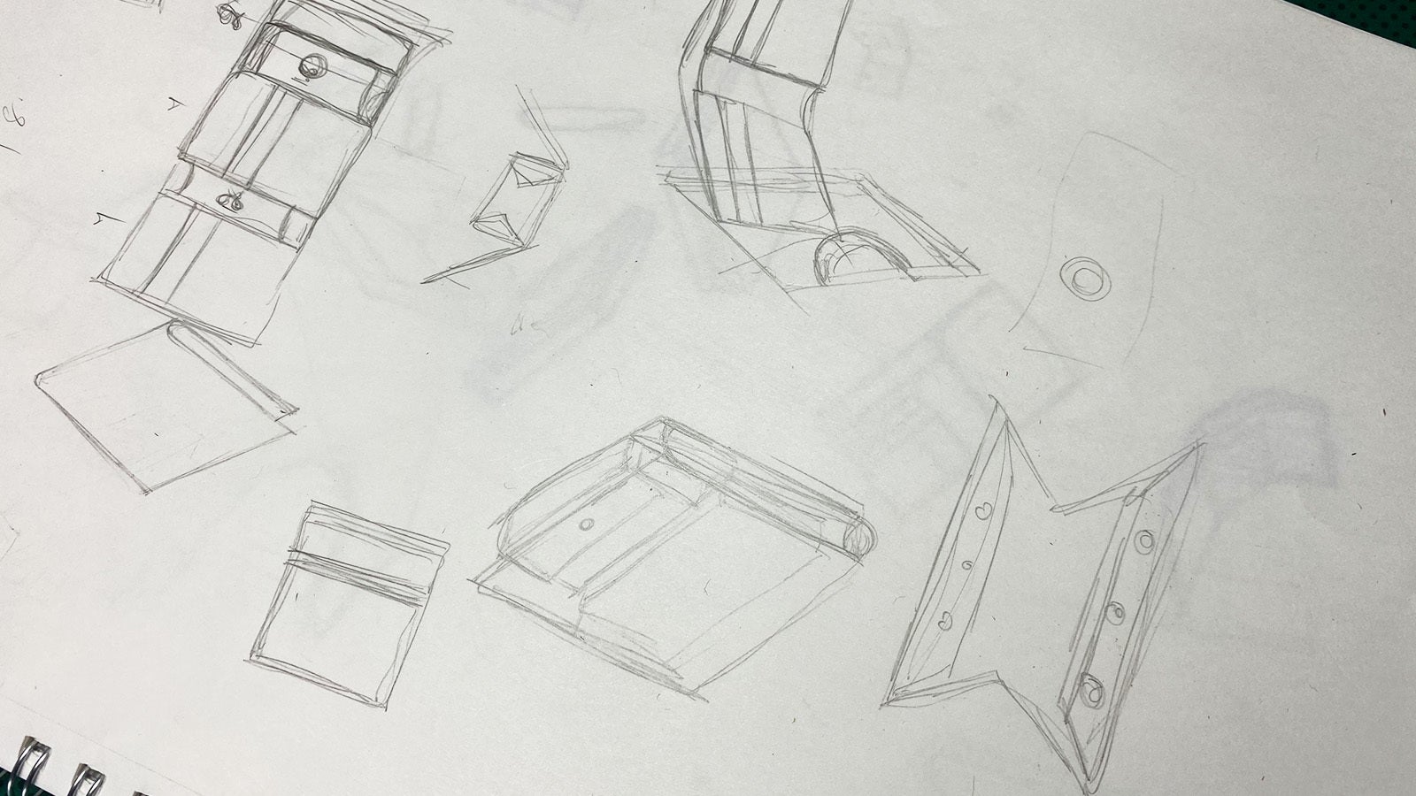 目指したのは「強度保持と形状維持」。財布の強度を保ちつつしっかりと角が残るカチッとした形を維持させることを目指し、ラフスケッチを重ねてデザインを練りました。