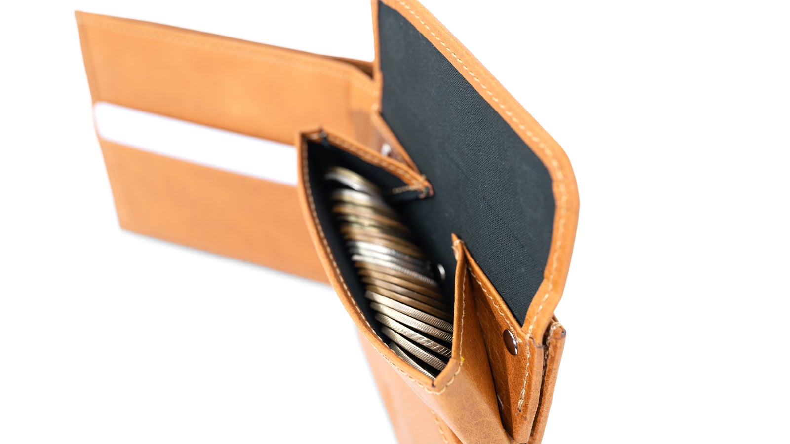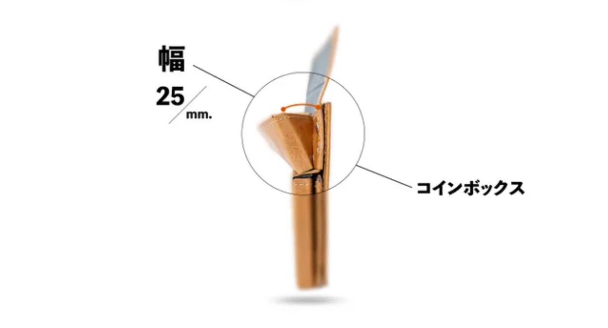 BOX型硬貨ポケットは内部の隅々まで硬貨が分散されるように設計してあるため、全体の厚みを抑えることができます。