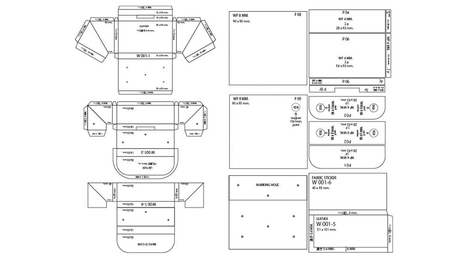 製図の後は試作ですが、素材としては柔らかい”革”を使いながら接合部分や上下左右の平らな面の強度を維持させることに何度もつまずき大量の失敗サンプルが生まれました。