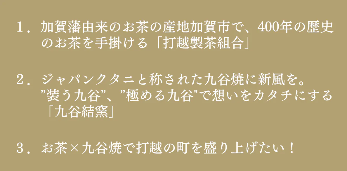 ▼お茶×九谷焼で打越町を盛り上げよう!