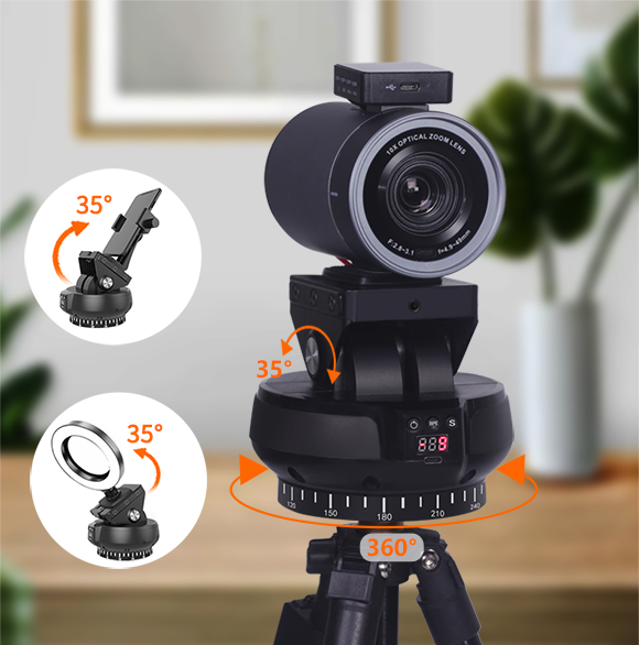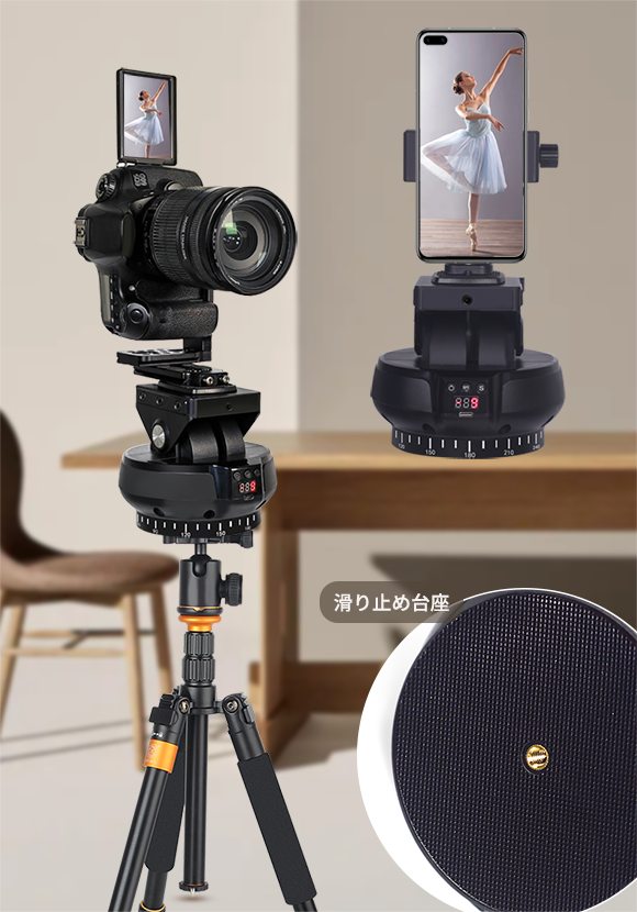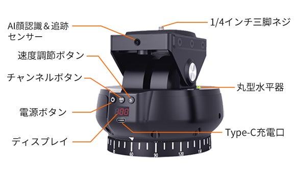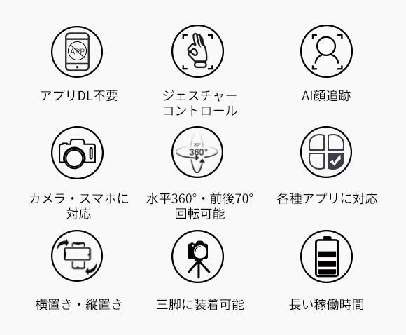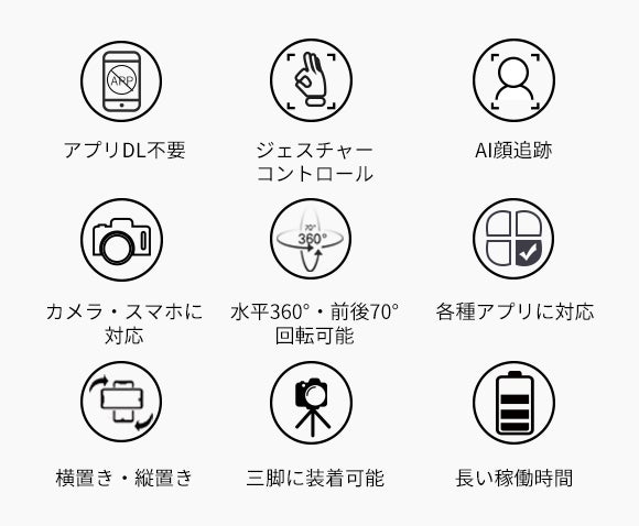 上下左右ボタンを押すと雲台がサクサク動いてくれます。簡単なジェスチャーで顔追跡機能をコントロールすることもできます。面倒な設定やアプリのダウンロードは一切不要!カメラなどのデバイスの設置方法も簡単なので機械が苦手な方でも安心!