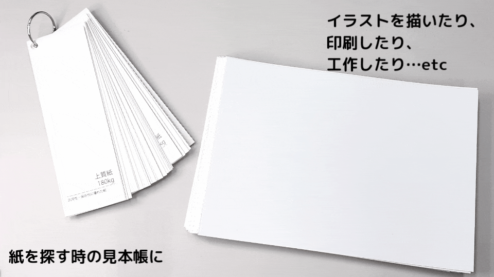 それぞれの紙には、紙の情報(紙の名前や厚み、色など)が記載されており、