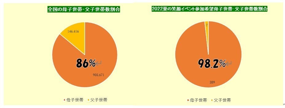 昨年の笑顔イベントの応募者の割合ですと、98.2%が母子世帯でした。