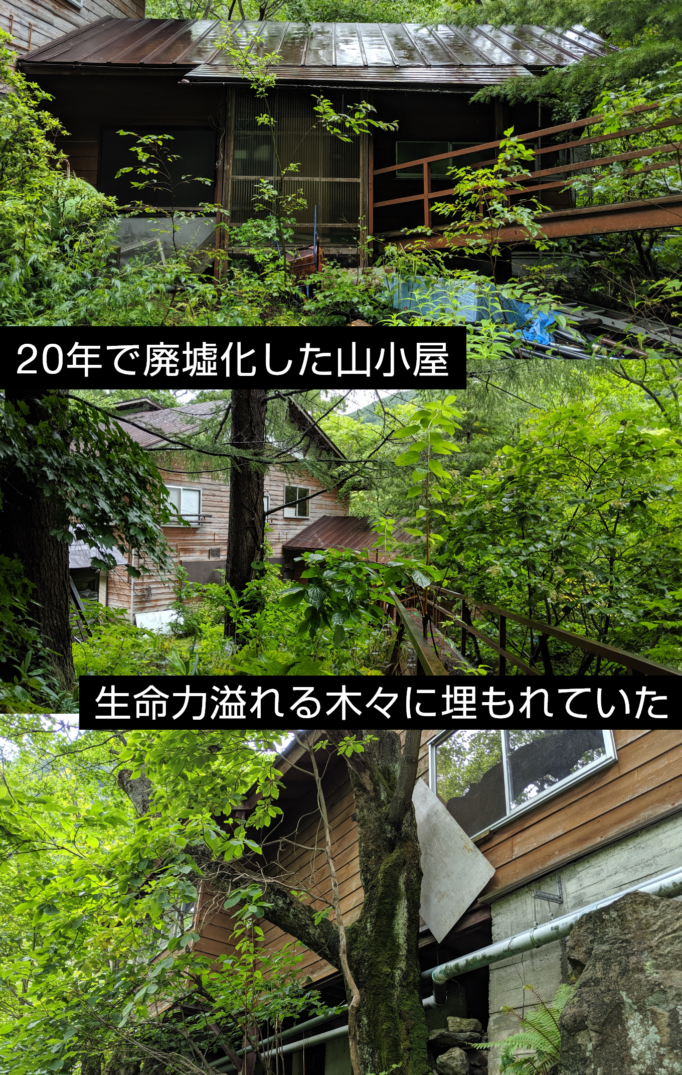 ところが、20年ほど前にオーナーが亡くなってからは小屋の管理がされることもなく老朽化し完全に自然に還っていました。