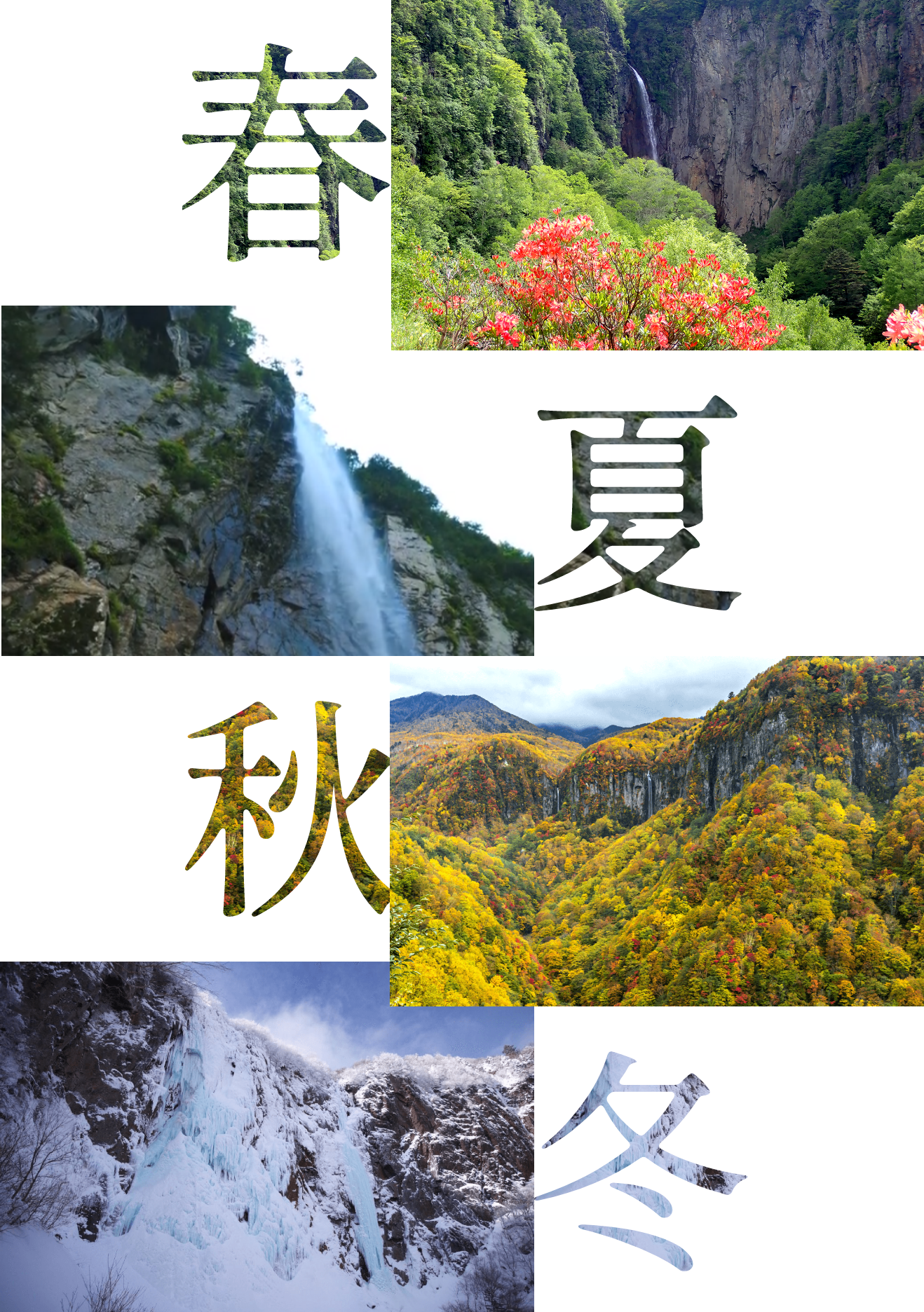 滝の正面に位置する台地からは80mを超える2条の滝を望める絶好のビューポイント。 秋には見事な紅葉と、冬には厳かな氷瀑と対峙することができます。 この地に山小屋ができれば、黎明の朝焼けに染まる滝を、星空を背負った滝を見ることも容易くなることでしょう。風景は季節だけではなく、天候や時間によっても多くの表情を見せてくれます。その基点となる今回の山小屋プロジェクトを心より応援しています。
