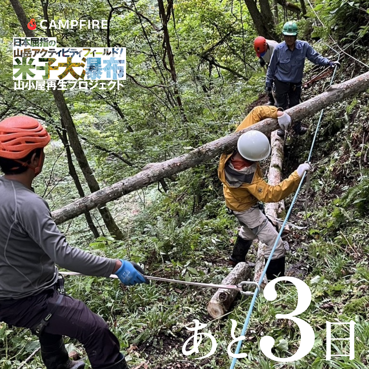 この度は、長野県須坂市「米子大瀑布」山小屋再生プロジェクトに対するご支援をいただき、誠にありがとうございます。皆様の温かいご協力のおかげで、私たちはこのプロジェクトの目標額を達成することができました。