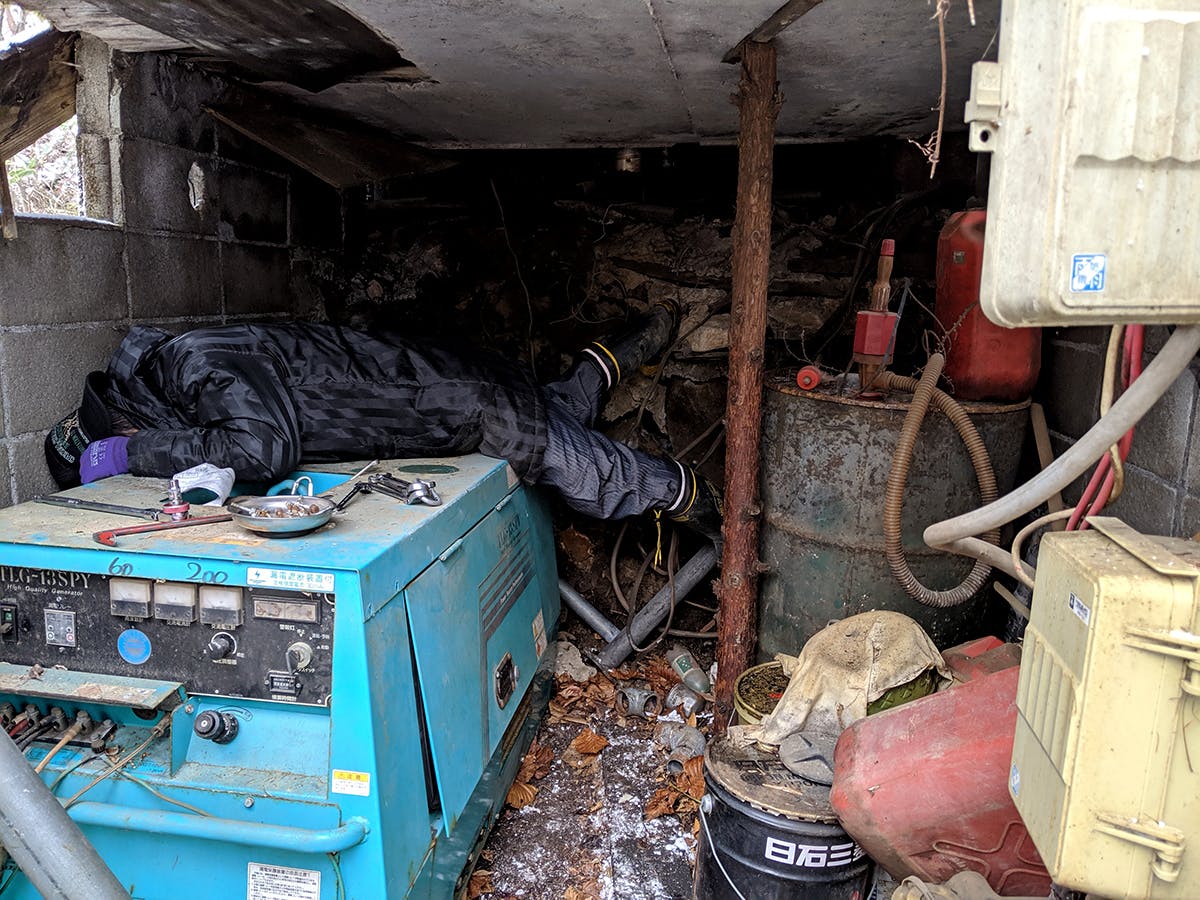 それでもサバイバル技術に長けた山の仲間たちと共に自分たちだけの力で直してみようと考え、屋根があるだけ幸せと思いながら作業に取り掛かり始めた矢先…