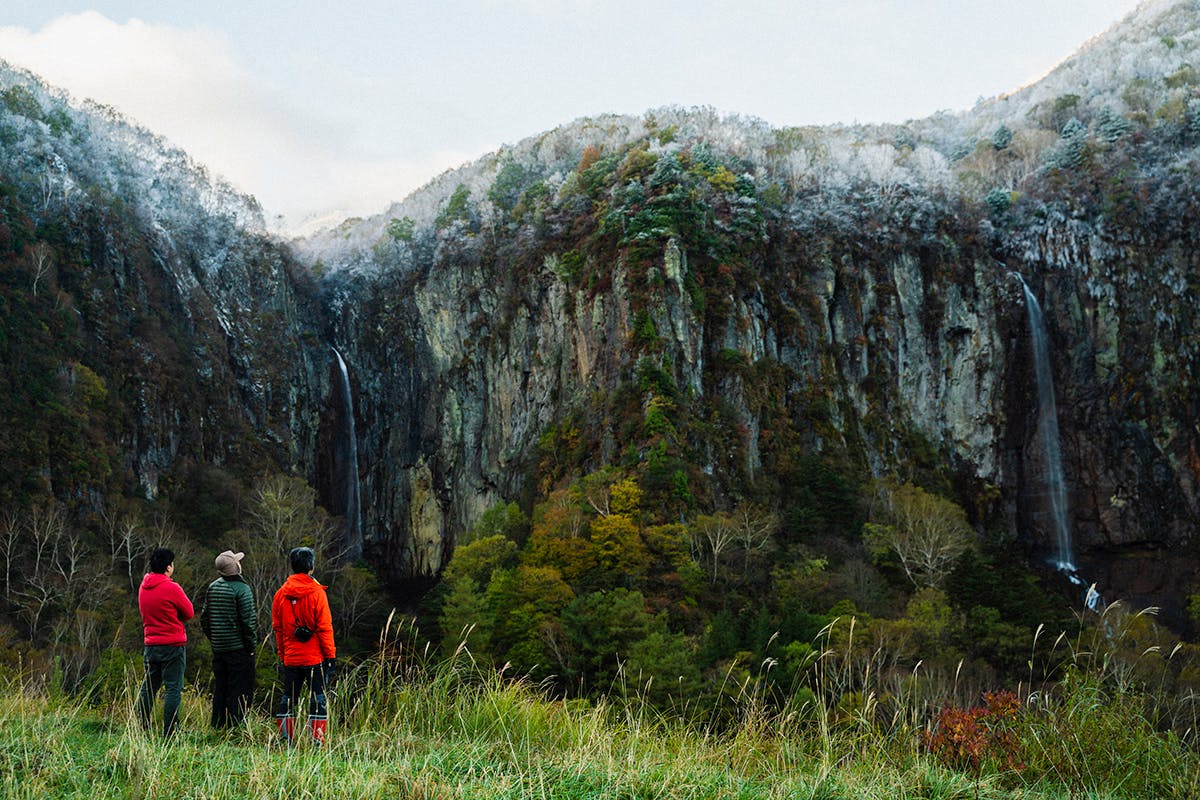 滝の正面に位置する台地からは80mを超える2条の滝を望める絶好のビューポイント。 秋には見事な紅葉と、冬には厳かな氷瀑と対峙することができます。 この地に山小屋ができれば、黎明の朝焼けに染まる滝を、星空を背負った滝を見ることも容易くなることでしょう。風景は季節だけではなく、天候や時間によっても多くの表情を見せてくれます。その基点となる今回の山小屋プロジェクトを心より応援しています。