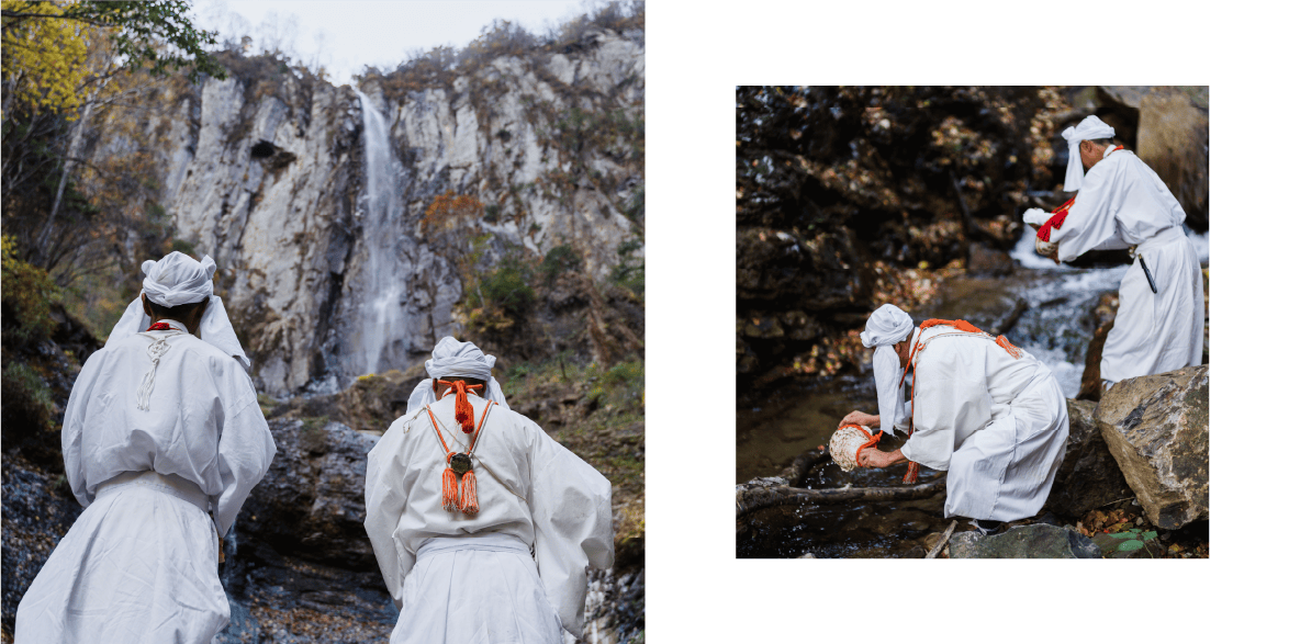 不動滝は四阿山登拝の禊の滝として、身体を清める場所であります。落差80mを越える滝での滝行は全国的に見ても非常に貴重なものです。今回は米子不動寺ご指導のもと、作法をわきまえ、テントサウナで身体を暖めてから、万全の体制で滝行に挑戦していただけます。