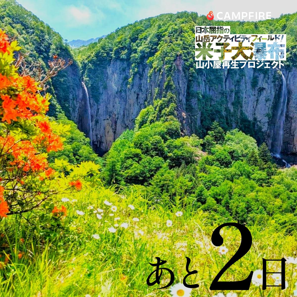 私たちは皆様と共に、「米子大瀑布」山小屋再生プロジェクトの目標金額達成を節目とし、新たな挑戦に向かってまいります。皆様の温かいご支援を引き続きお願い申し上げます。皆様の力で「米子大瀑布」という素晴らしい自然・文化遺産を未来に残し、喜びを分かち合いましょう。ありがとうございます!