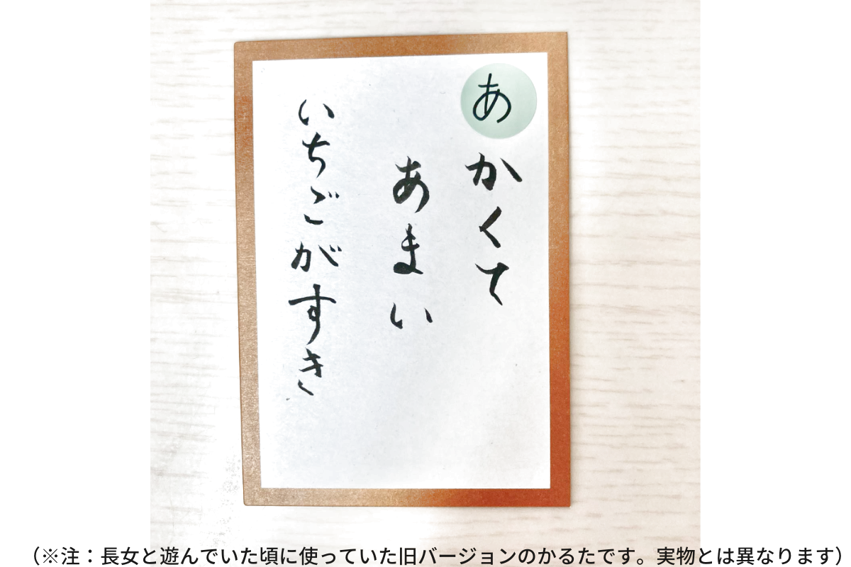 ただかるたをするのではなく、子どもたちと一緒に「今日のおやつは何かな~?」と楽しみながら遊べるので、はじめて文字に触れるお子さんでも楽しく学べます!
