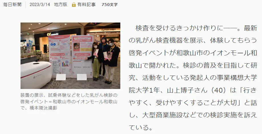 「乳がん検査、最新機器を体験 無痛、放射線使用せず イオンモール和歌山で展示会/和歌山」